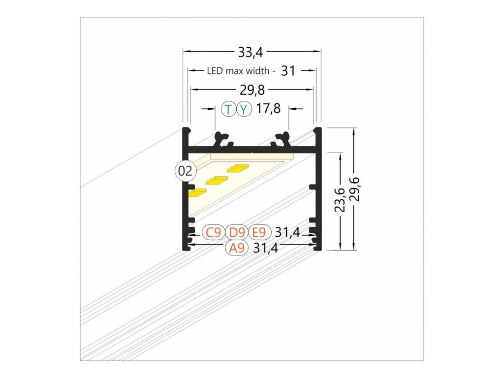 - Svou vysokou teplotní vodivostí zajistí rozvedení tepla od LED diod do celého tělesa profilu a jeho povrch pak teplo vyzáří do okolního vzduchu