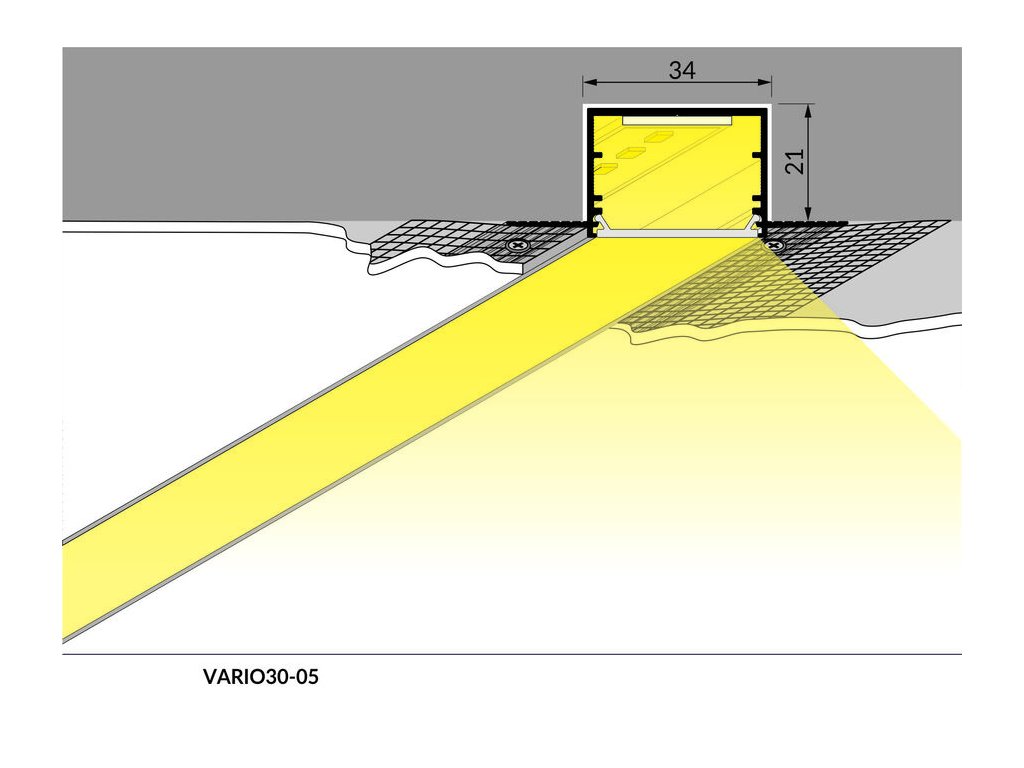 Zapuštěné profily vyžadují, aby v podkladu byla před montáží udělána drážka. Profil se pak stane organickou součástí povrchu a je zcela nenápadný. - Úhlové