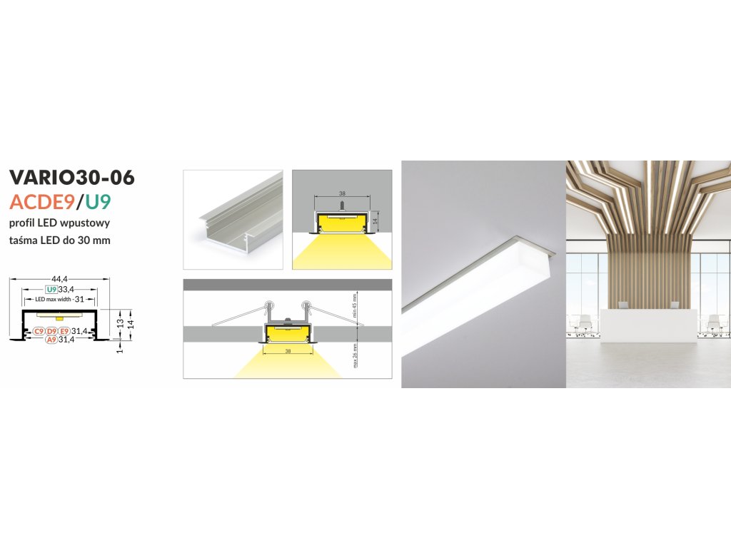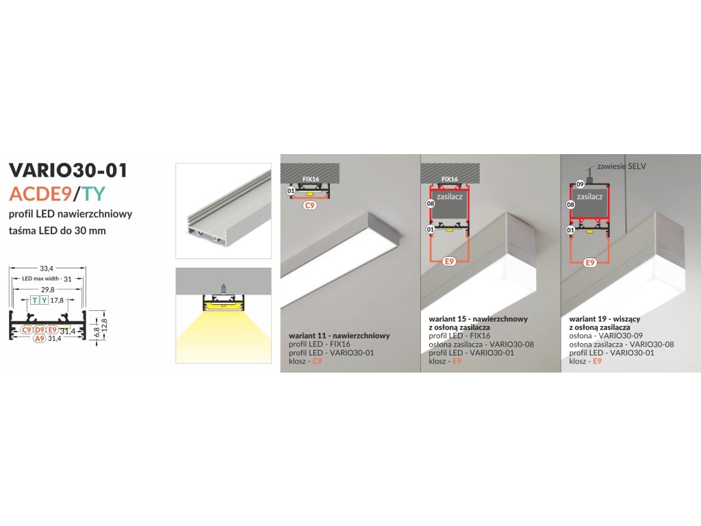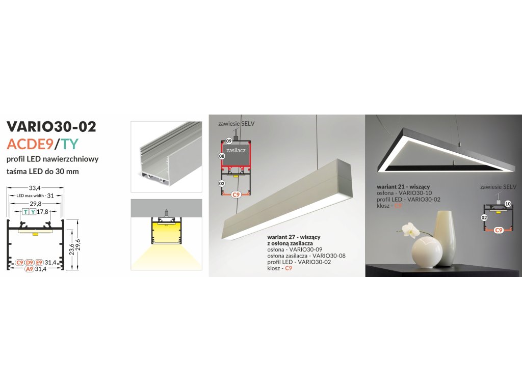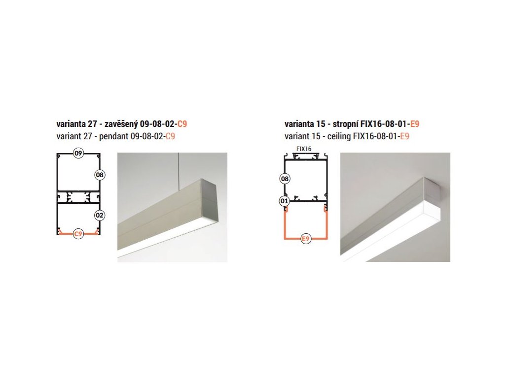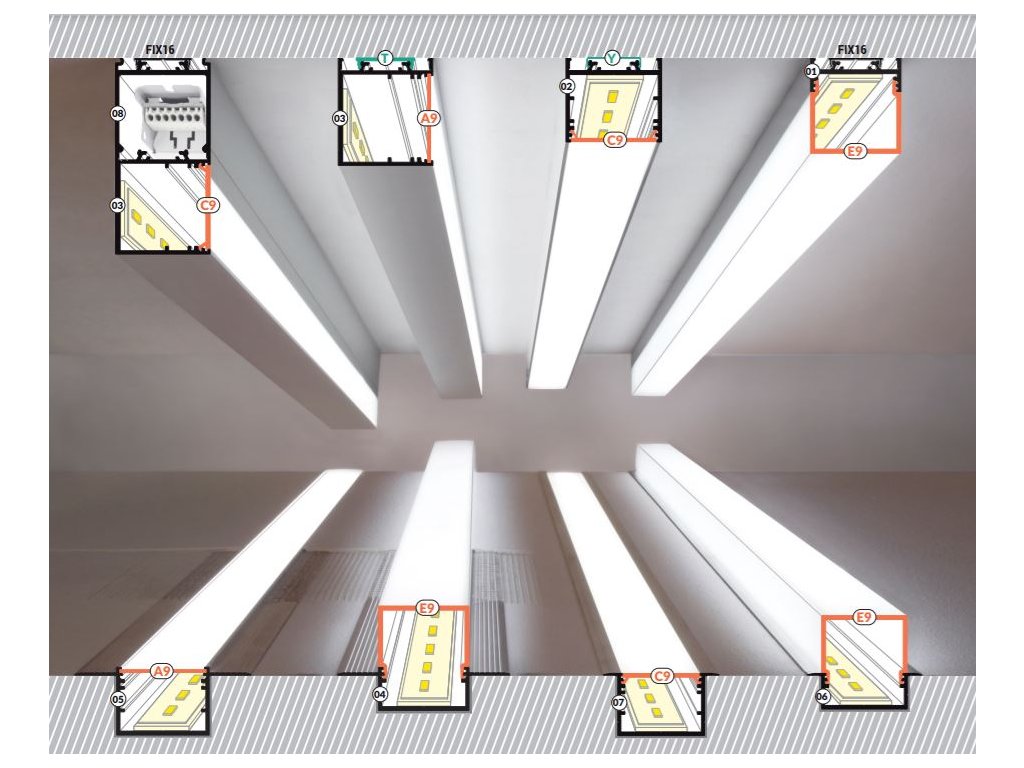 Sofistikovaná „stavebnice“ profilů a jejich dílů pro konstrukci LED svítidel s vysokou svítivostí. Světelným zdrojem je u těchto profilů výkonný LED pásek nebo pevná LED světelná výzbroj.