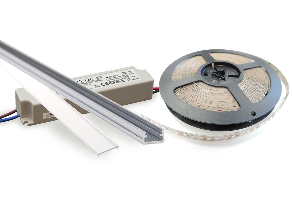 Sestava o délce 3 metry, 4 metry a 5 metrů se dodává s hliníkovým profilem v délce 2+1, 2+2 nebo 2+2+1 meter profilu. LED pásek je dodávaný v požadované délce v celku. V případě, že máte zájem o profil dlouhý 3 nebo 4 metry vcelku, prosím kontaktujte nás před objednáním emailem nebo telefonicky. Profily v délce 5 metrů vcelku nejsou k dispozici.