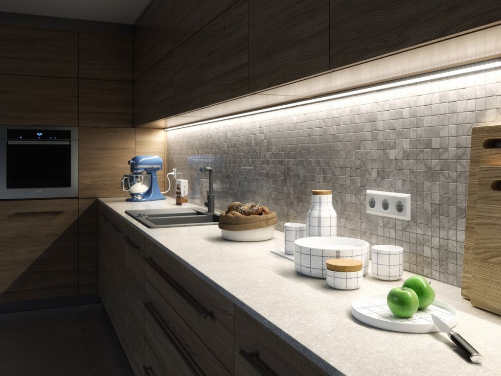 LED sestava je ideální pro osvětlení pracovní desky na kuchyňské lince nebo jiných pracovních plochách.