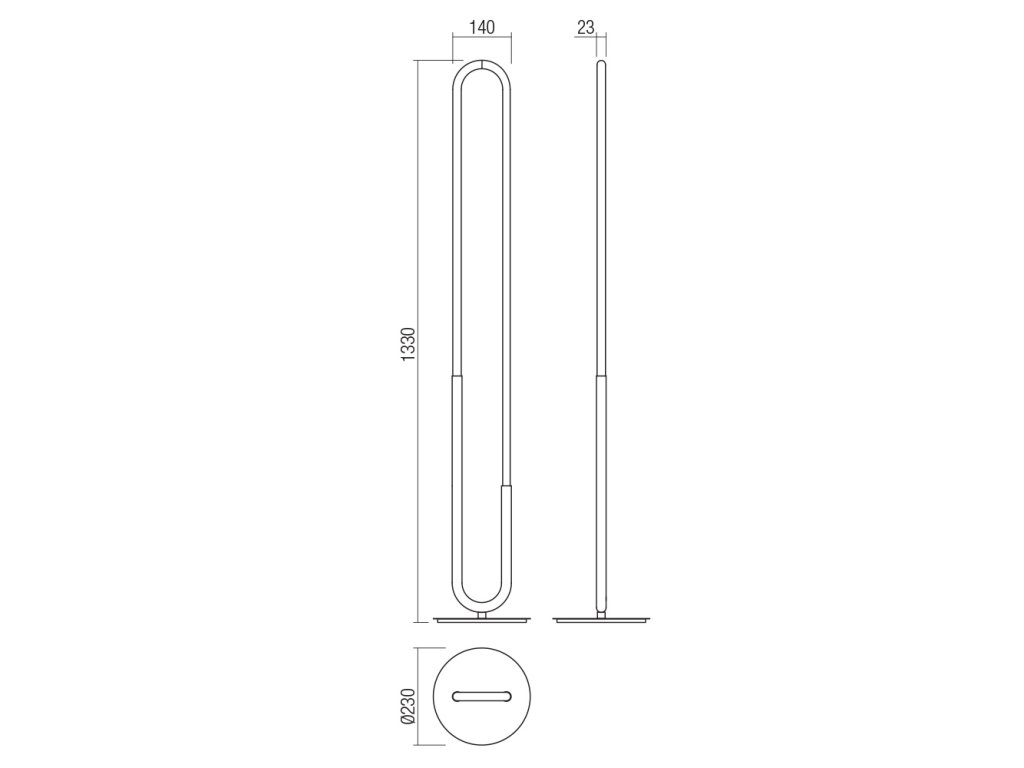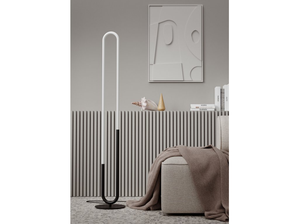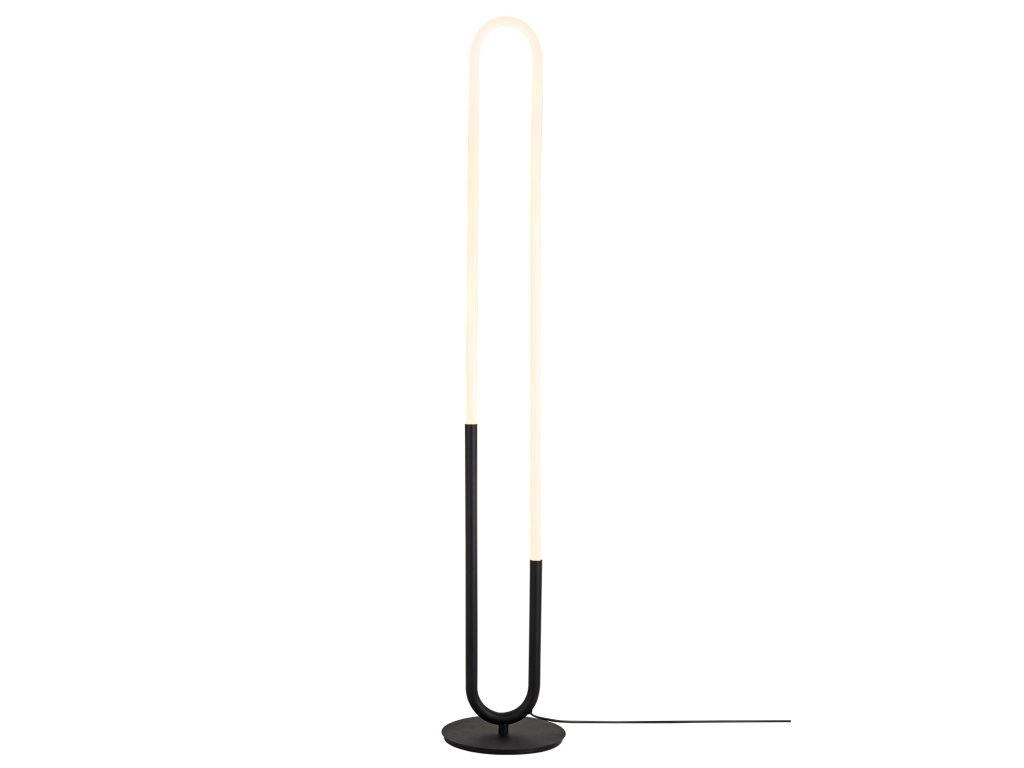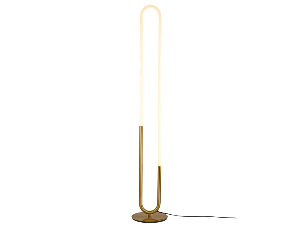 Stojací lampa vybavená SMD LED diodami, kovová konstrukce lakovaná v pískově černé nebo mosazné barvě s opálovým akrylovým difuzorem.