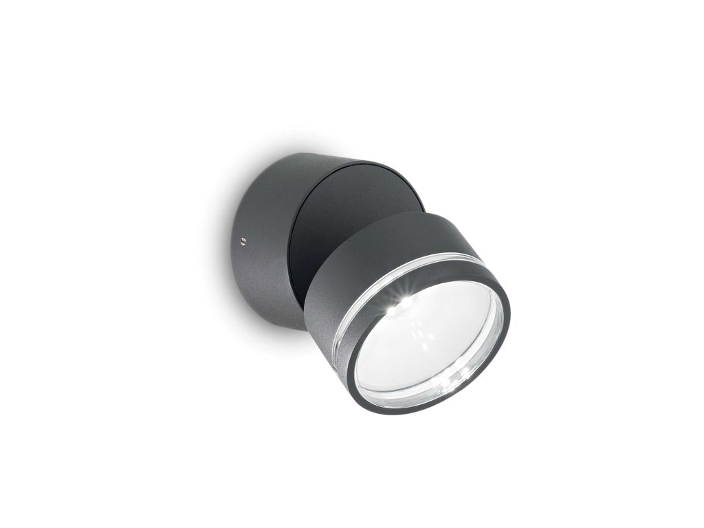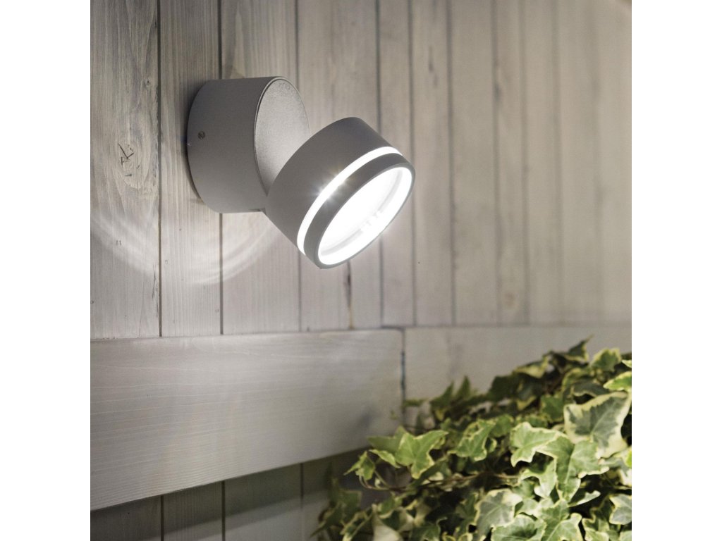 Venkovní nástěnná LED bodovka Omega Round AP1 v antracitovém a bílém provedení z kolekce designového osvětlení Ideal Lux má jednoduchý moderní styl a velmi dobře rozsvítí prostory venku. Tělo je vyrobeno z tlakově litého hliníku s vnější povrchovou práškově lakovanou úpravou v tmavě šedé barvě. Čirý akrylový difuzor s tenkým průzorem je možné jednoduše sklopit a tím regulovat světelné paprsky. Svit vychází z integrovaného úsporného vysoce výkonného LED zdroje s maximálním příkonem 1 x 7,3 W v jasné denní bílé barvě s extrémně dlouhou životností 25.000 h. Zdroj je součástí svítidla bez možnosti výměny. Krytí IP54 označuje ochranu před prachem a dotykem drátem a proti stříkající vodě.