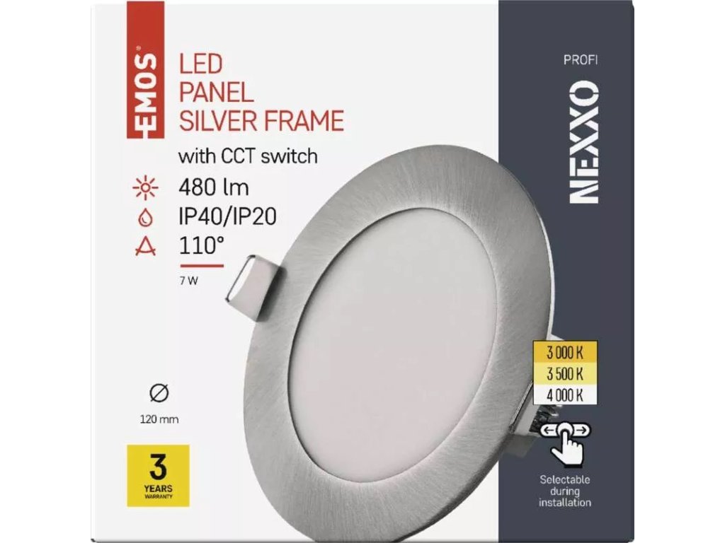 Svítidla NEXXO umožňují nastavit teplotu světla pomocí CCT přepínače. Během montáže se tak můžete rozhodnout, zdali se vám do interiéru hodí více teplá či neutrální bílá. Výjimkou jsou vestavná svítidla v bílé barvě, která mají teplotu chromatičnosti danou bez možnosti změny.