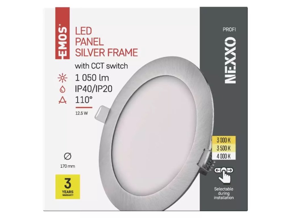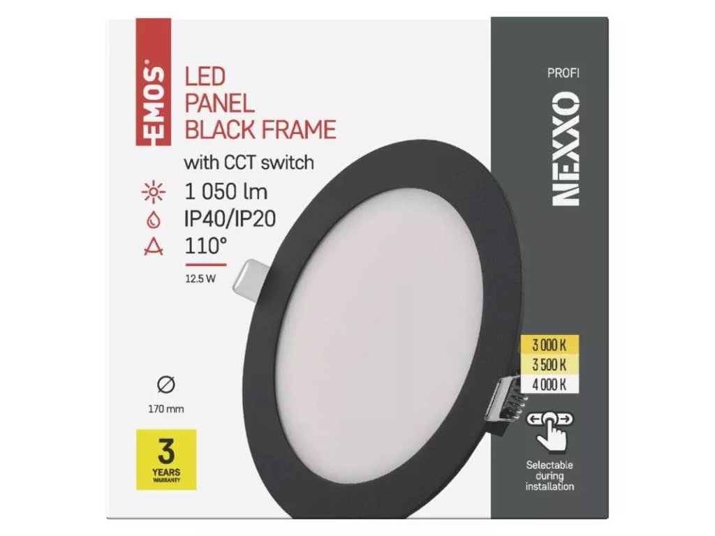 LED zápustný panel NEXXO ø17cm, 12,5W, CCT, černý/stříbrný