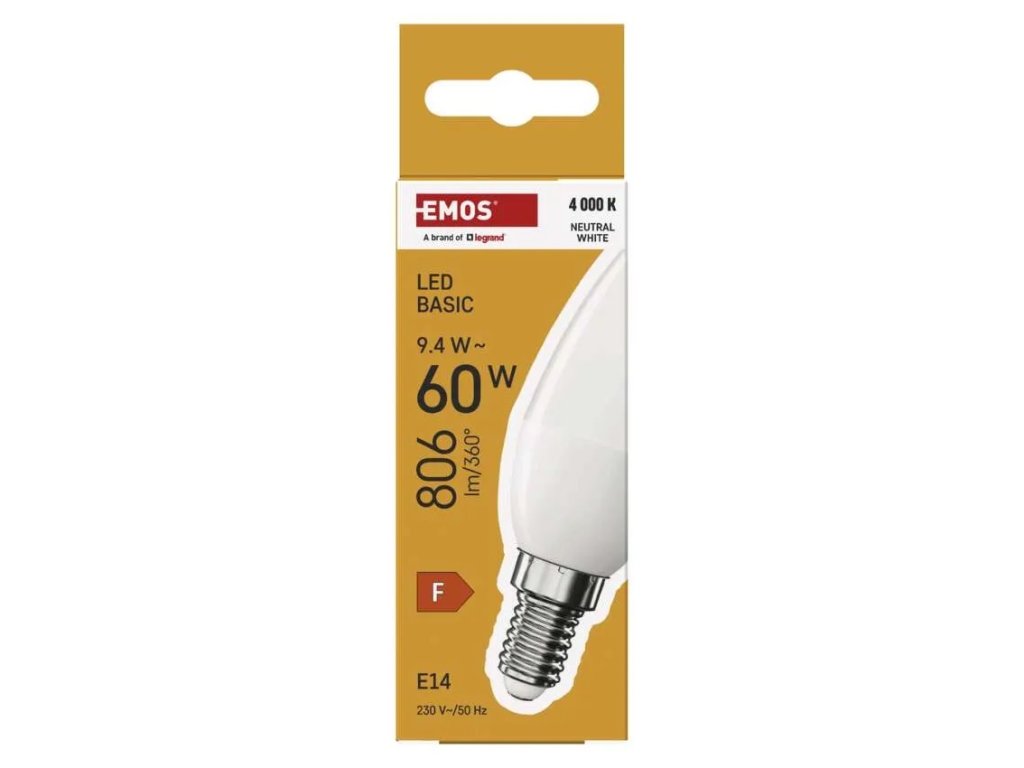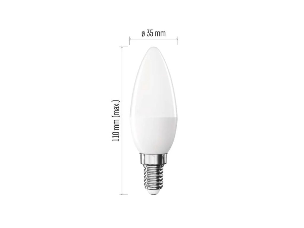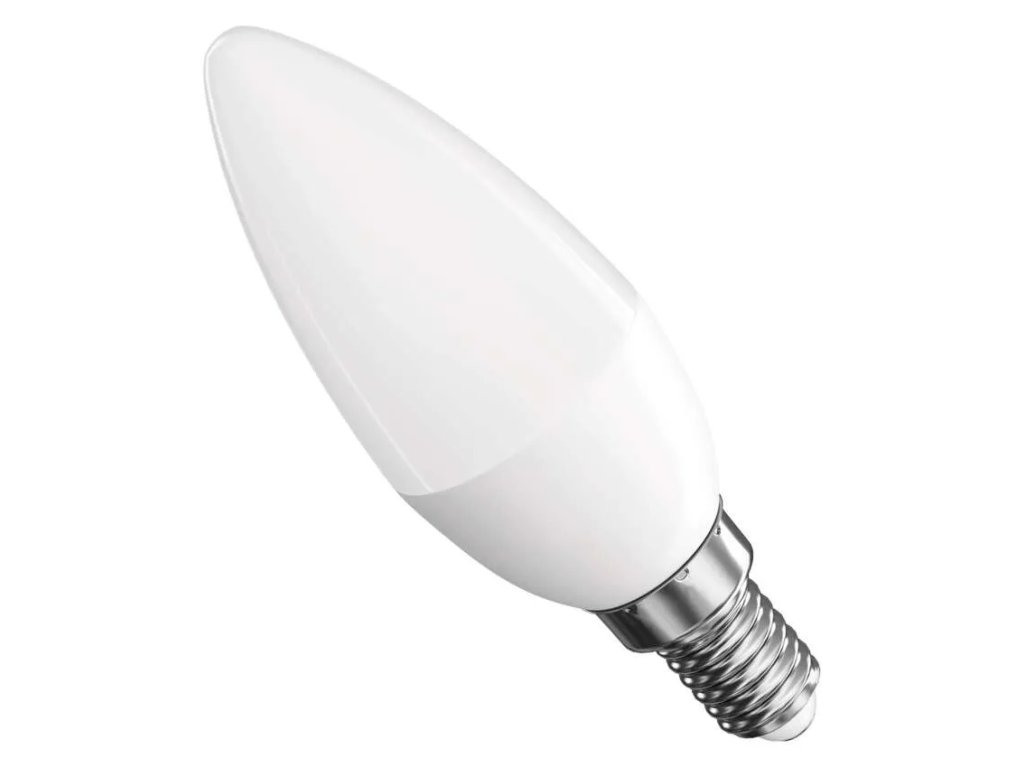 barva světla: neutrální bílá|energetická třída: F|index podání barev (CRI): 80|kompatibilita: –|náhrada za žárovku: 66 W|napětí: 230 V~/50 Hz|notifikace do mobilní aplikace: –|ovládání hlasovými asistenty: –|patice (uchycení žárovky): E14|počet čipů: neuvádí se|počet spínacích cyklů: 15 000|podporované OS: –|přenosová frekvence: –|příkon: 8,3 W|prodejní obal: 1 ks, krabička|protokol: –|řada: BASIC|rozměr: 110 × 38 × 38 mm|stmívatelná: ne|světelná účinnost: 108 lm/W|světelný tok: 900 lm|technologie: LED|teplota chromatičnosti: 4 000 K|tvar: svíčka|typ čipů: SMD|účiník: 0,56|úhel vyzařování: 220°|záruční doba: 2 roky|životnost: 20 000 hodinDoplňkové parametry