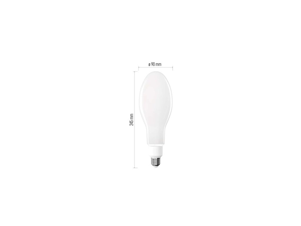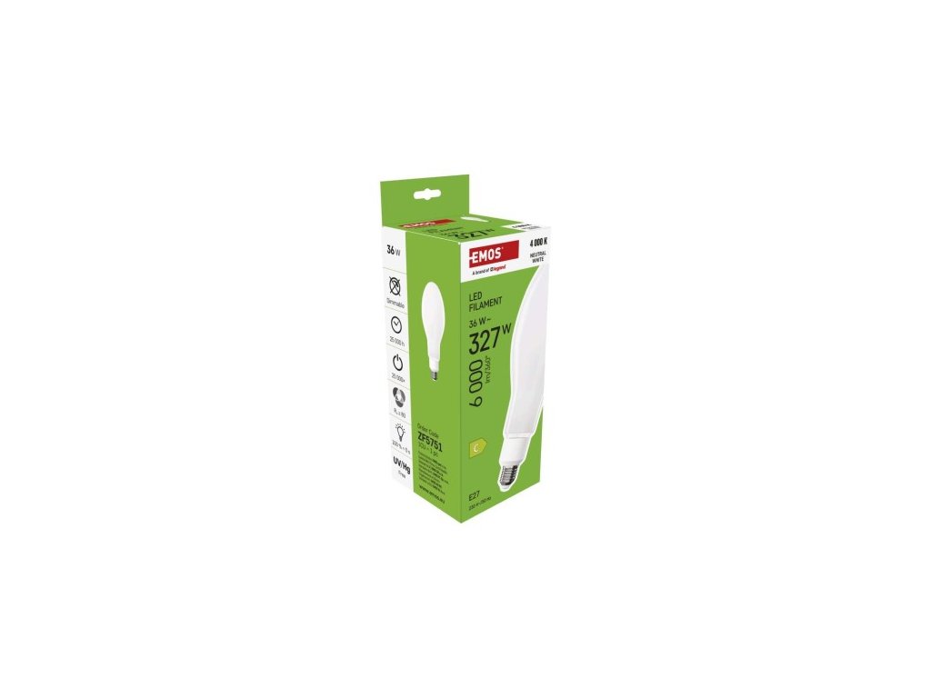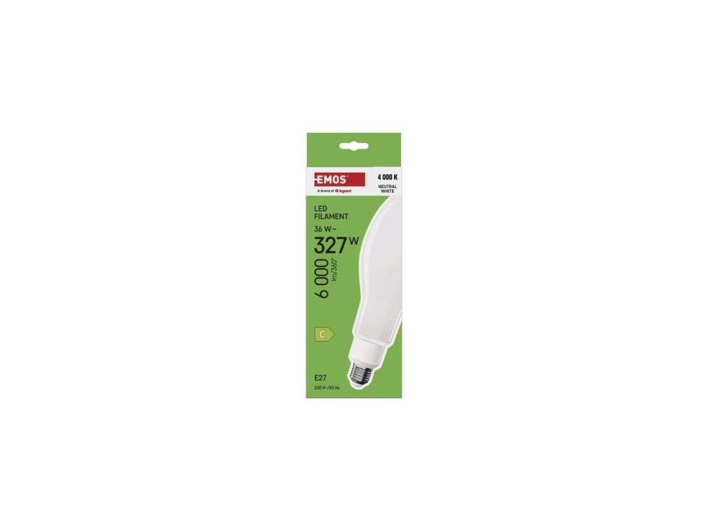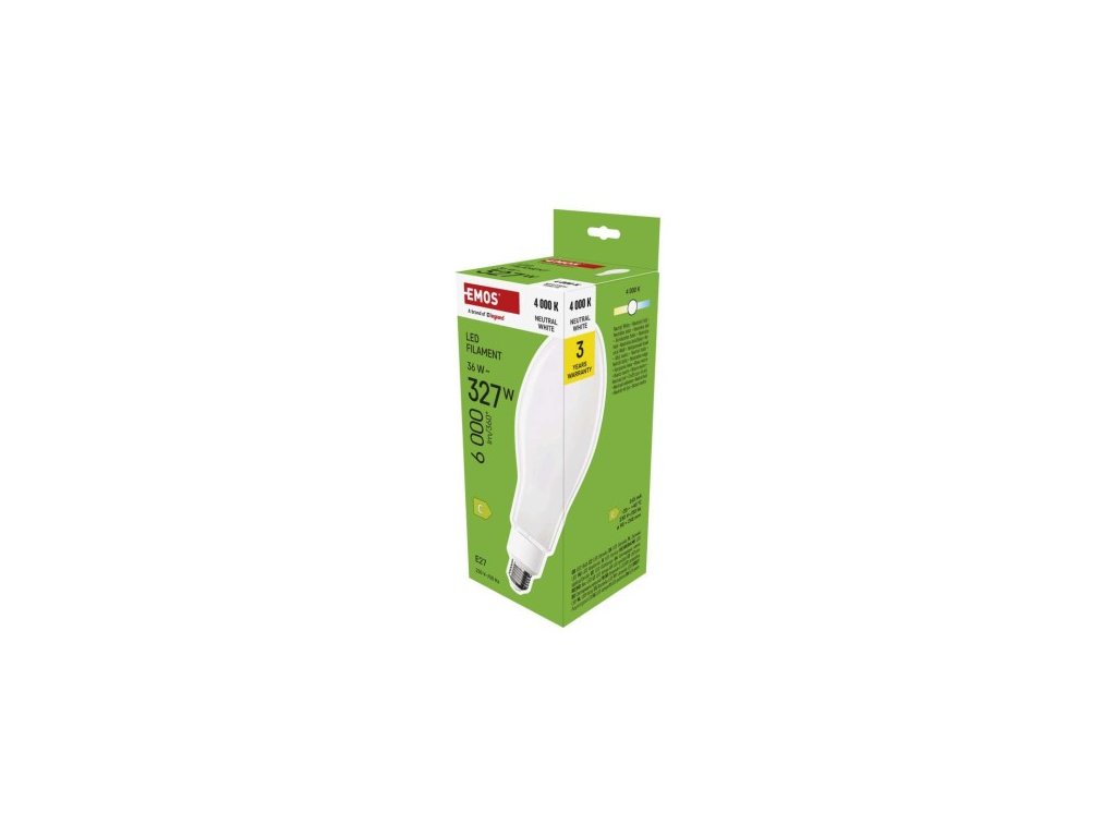 barva světla: neutrální bílá|energetická třída: C|index podání barev (CRI): 80|kompatibilita: neuvádí se|náhrada za žárovku: 327 W|napětí: 230 V~/50 Hz|notifikace do mobilní aplikace: neuvádí se|ovládání hlasovými asistenty: neuvádí se|patice (uchycení žárovky): E27|počet čipů: neuvádí se|počet spínacích cyklů: neuvádí se|podporované OS: neuvádí se|přenosová frekvence: neuvádí se|příkon: 36 W|prodejní obal: 1 ks, krabička|protokol: neuvádí se|řada: FILAMENT|rozměr: 90 × 90 × 245 mm|stmívatelná: ne|světelná účinnost: 167 lm/W|světelný tok: 6 000 lm|technologie: LED|teplota chromatičnosti: 4 000 K|tvar: ED90|typ čipů: COB|účiník: 0,97|úhel vyzařování: 330°|záruční doba: 3 roky|životnost: 25 000 hodinDoplňkové parametry