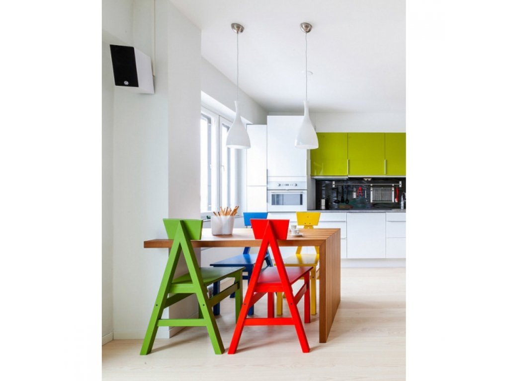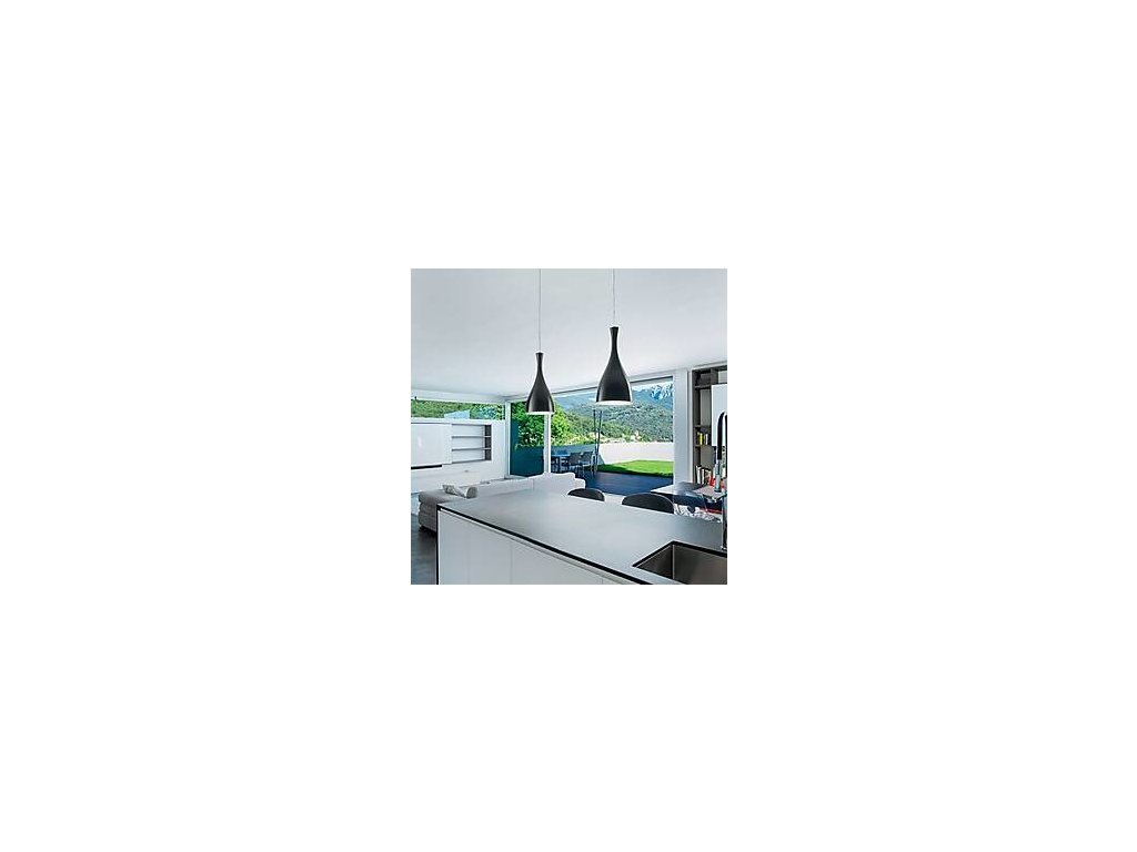 Elegantní a moderní svítidlo tvoří kovové tělo v chromovém provedení a stínítko z foukaného pískovaného skla, u kterého je vnější strana vypalovaná do černého zbarvení a vnitřní strana je laděná do elegantní bílé. Výhodou svítidla je možnost úpravy zavěšení pomocí automatického zařízení.