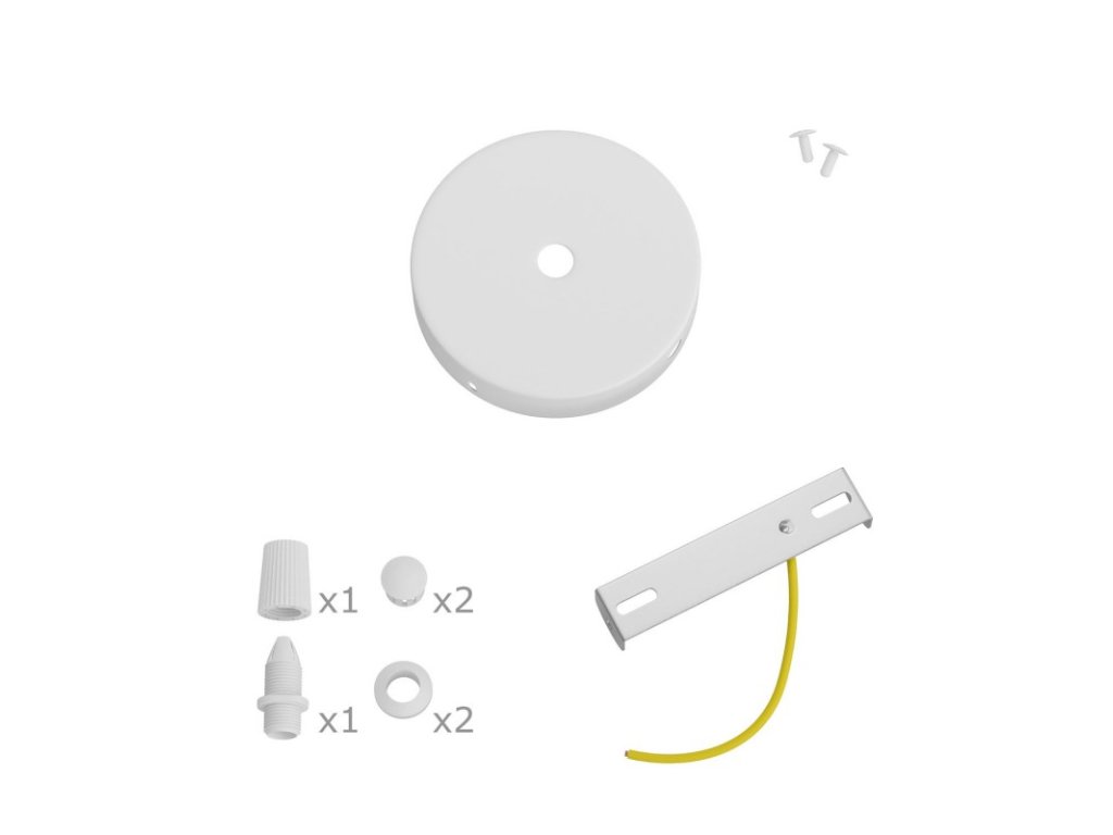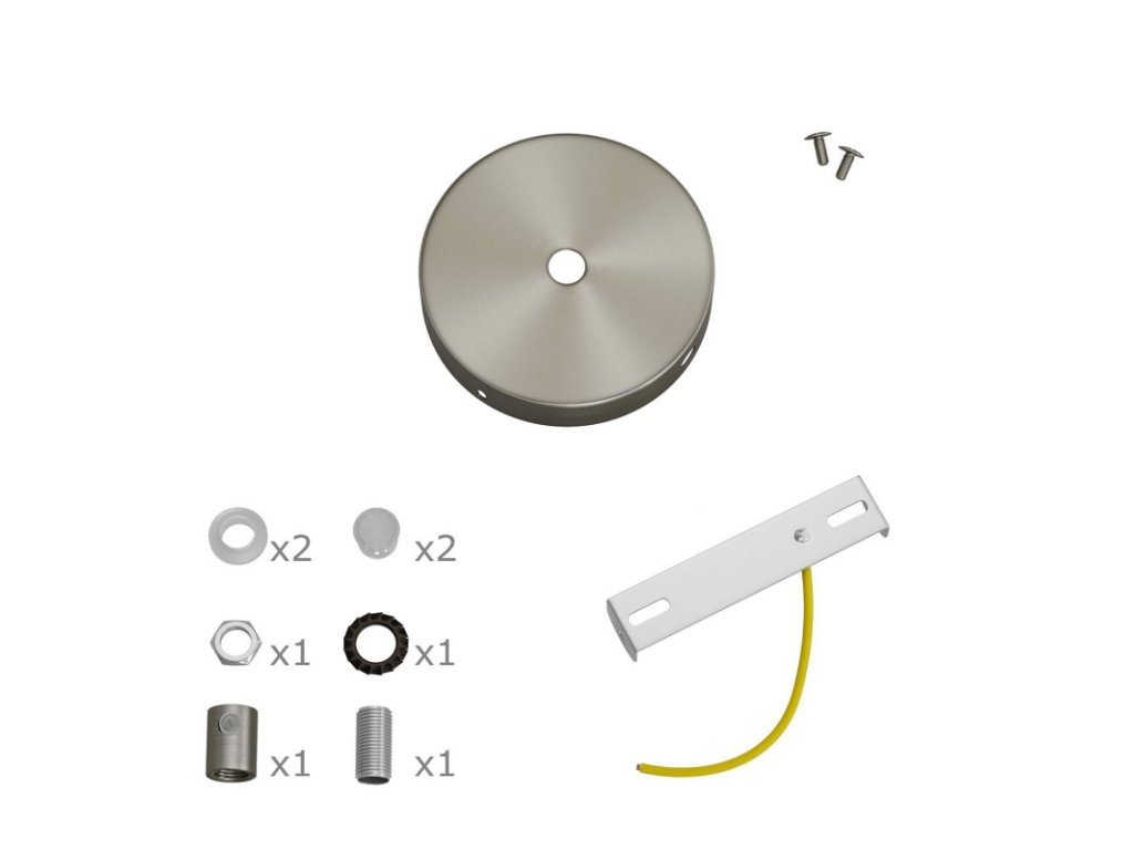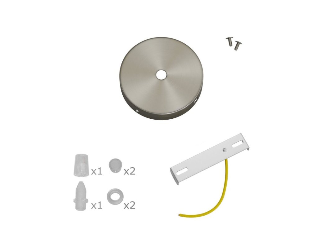 Mini kovový stropní baldachýn s 1 středovým otvorem a 2 bočními otvory se používá k sestavení nástěnného nebo stropního svítidla, které může mít různý počet světelných zdrojů: od 1 do 3. Tento komponent je pro vás ideální, pokud:
