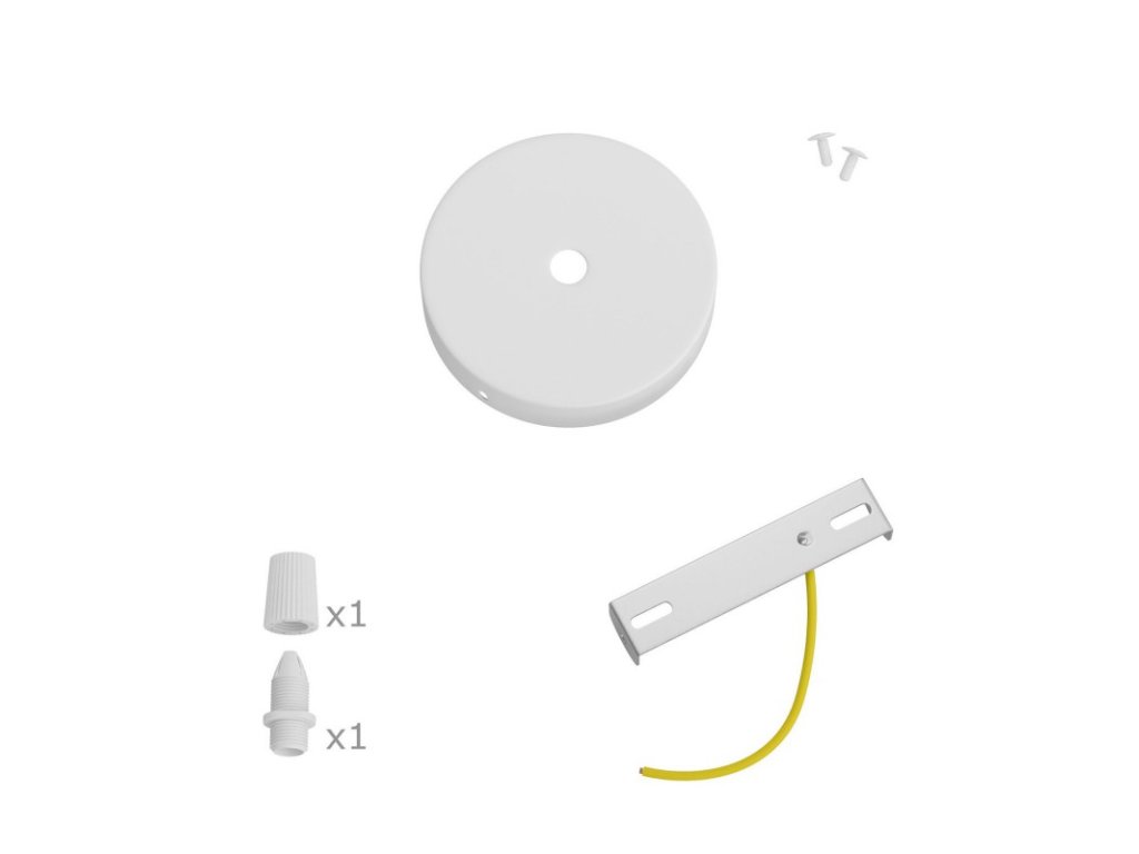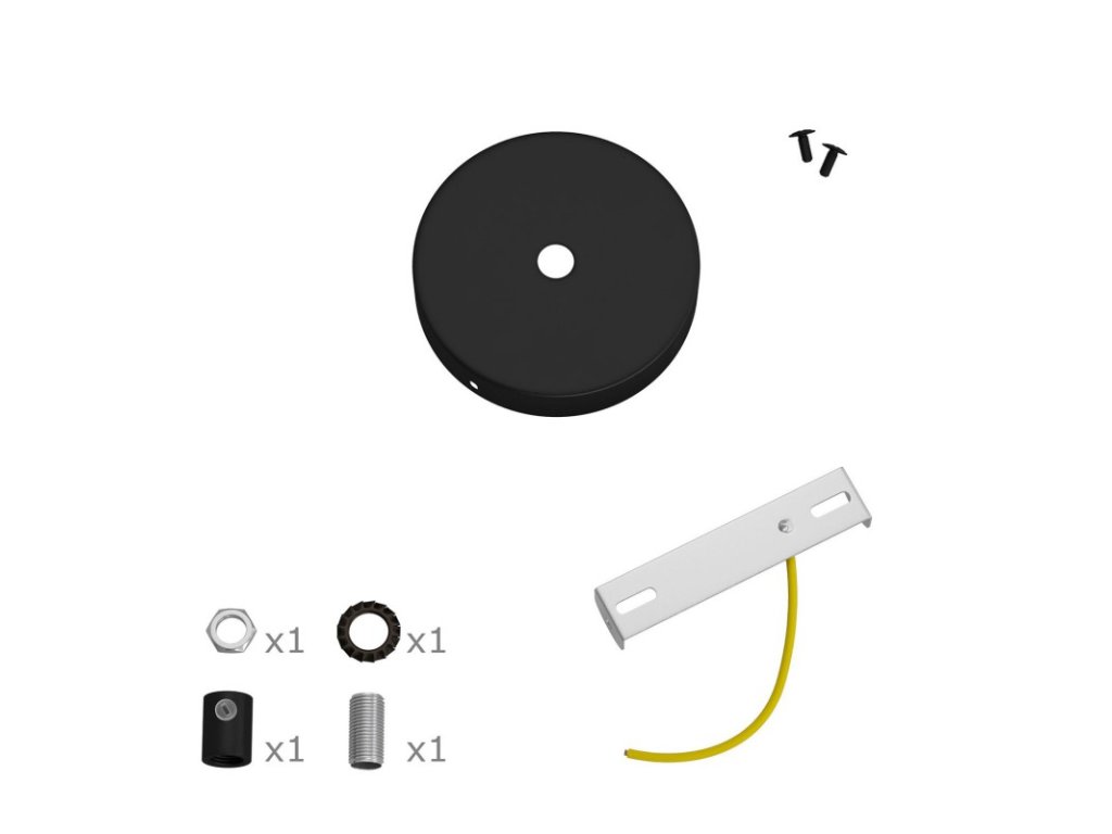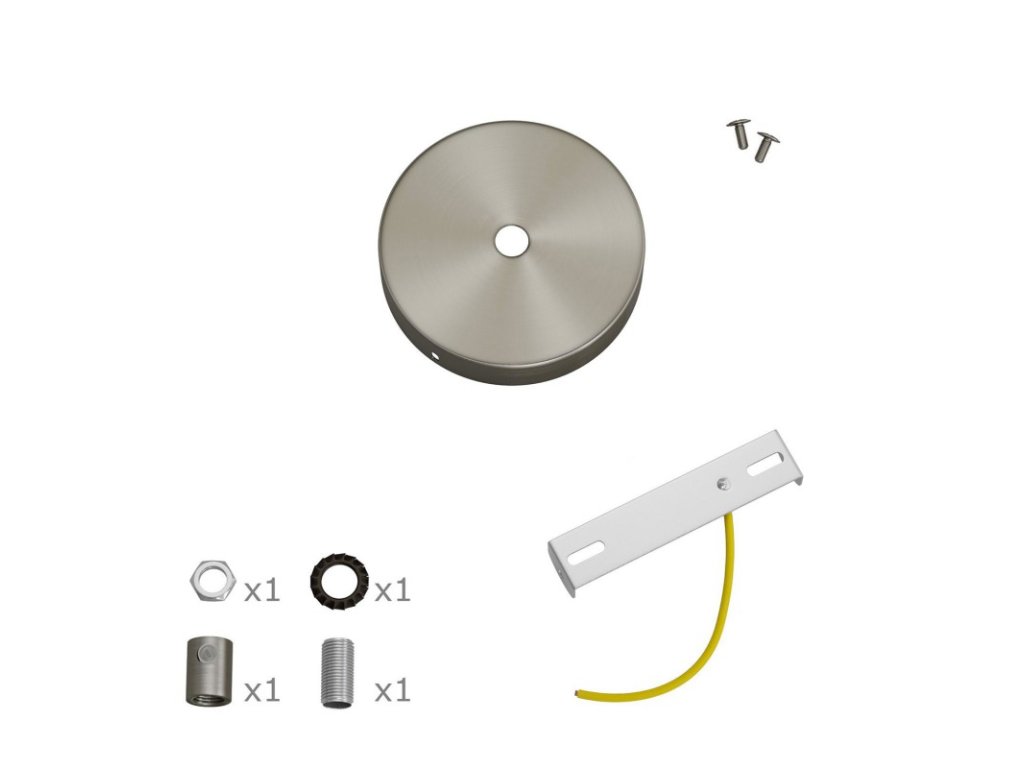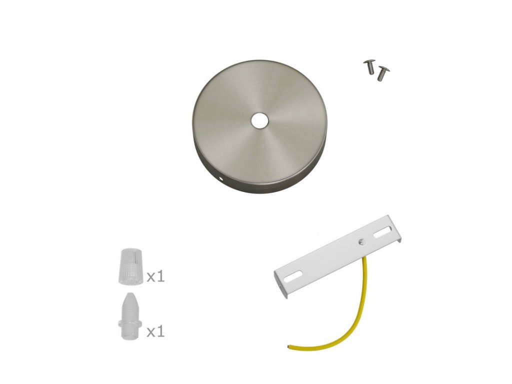 Malý stropní baldachýn s 1 středovým otvorem v sadě slouží k sestavení nástěnné nebo stropní lampy s jediným zdrojem světla. Kov je odolný materiál, který lze umístit do mnoha prostředí, bez ohledu na styl: minimalistický, skandinávský, industriální, nebo klasický, naleznete zde kovovou povrchovou úpravu, která Vám bude nejvíce vyhovovat! Tento malý kovový baldachýn s jedním otvorem je pro vás, když: