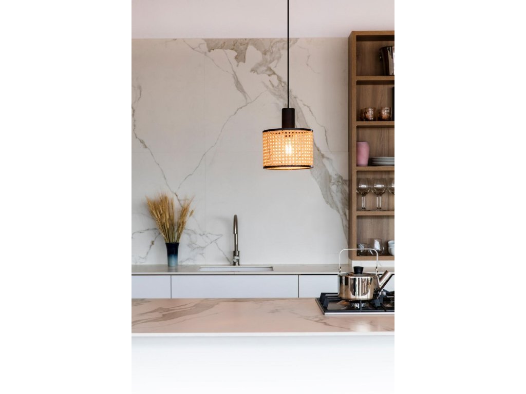 MAMBO 210 závěsné svítidlo, černá/ratan, pr.210 se zástrčkou - FARO