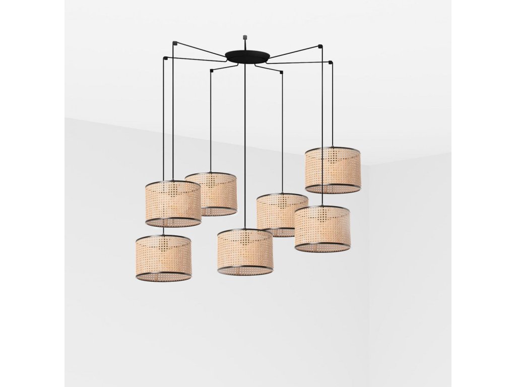 MAMBO závěsné svítidlo, černá/ratan, pr.320 7L - FARO