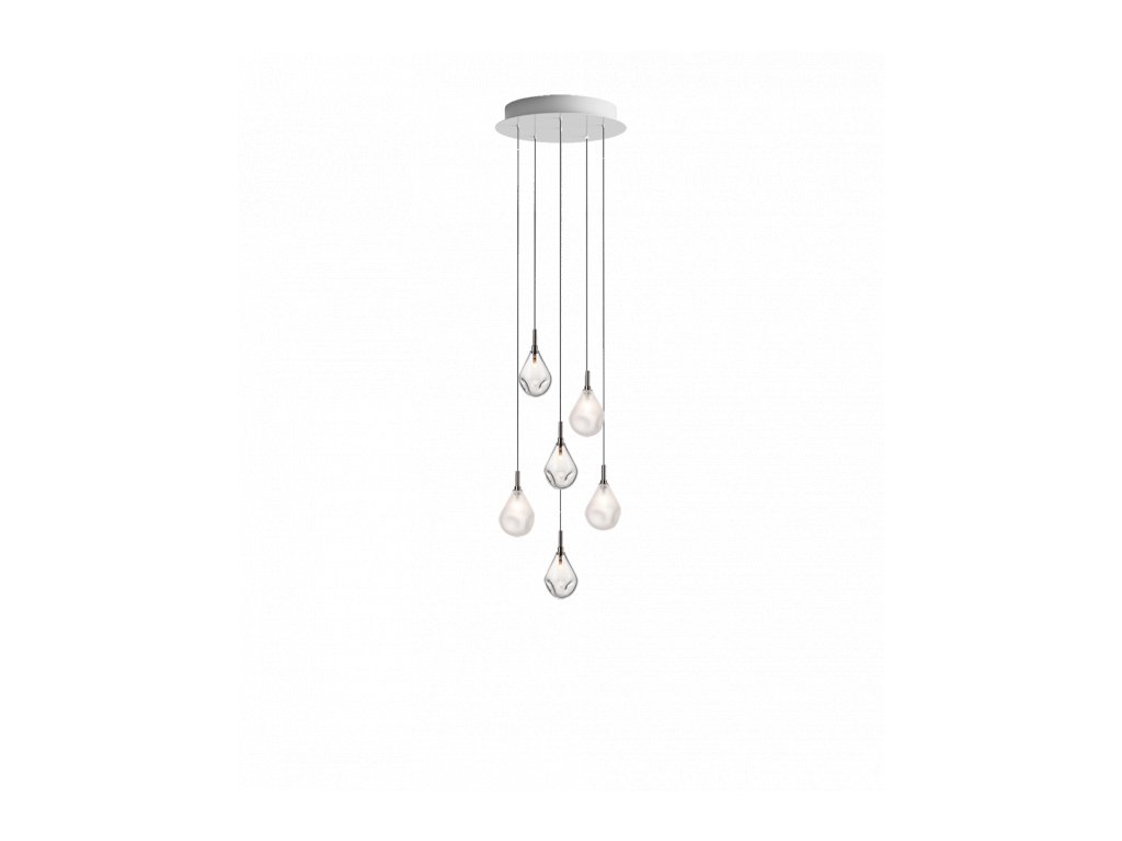 Rozsvícením se metalická kapka přemění v transparentní objekt s duhovými odlesky a přizná tak svůj křišťálový charakter. Celá kolekce je vyrobena technikou ručního foukání bez...