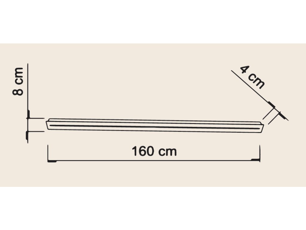 Lineární kovová rozeta lakovaná pískově černou, kávovou nebo bílou barvou pro instalaci 7 závěsů. Maximální průměr otvoru pro vstup kabelu 5 mm.