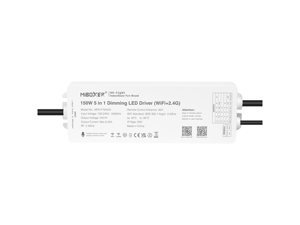 Napájecí zdroj a LED přijímač pro RGB+CCT pásky Mi-light, 150W, WiFi, 2.4GHz, WP5-P15V24