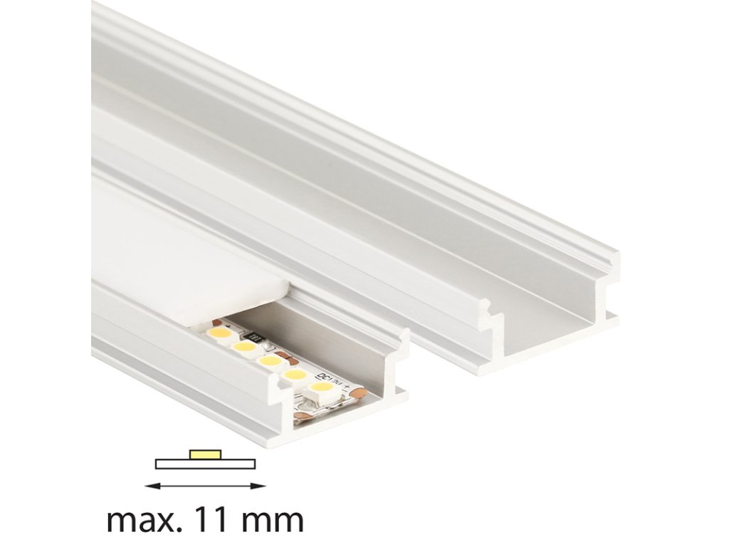 Tento konkrétní profil je určen pro zapuštění do podlahy. Jeho konstrukce umožňuje pevné vlepení difuzoru, což zajišťuje vysokou odolnost vůči vlhkosti a povětrnostním podmínkám. Díky tomu je vhodný i pro venkovní použití, kde může dosahovat krytí až IP67. Sestava profilu s difuzorem je navržena tak, aby bez problémů snesla běžné mechanické zatížení, takže po ní lze bezpečně chodit. Montáž probíhá jednoduchým vsunutím profilu do připravené drážky a jeho následným upevněním pomocí lepidla nebo vhodného tmelu.