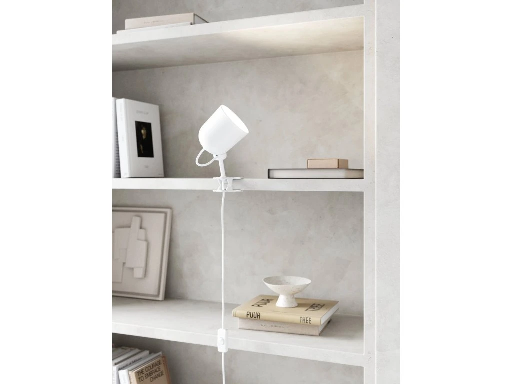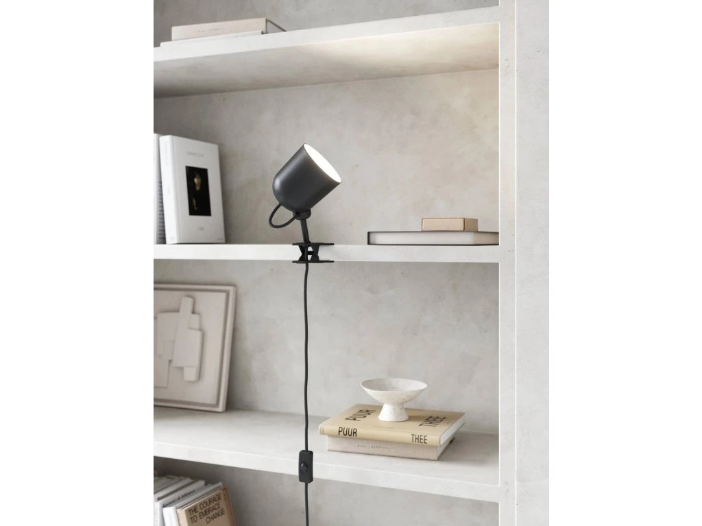 Lampička ANGLE se svorkou nabízí praktické řešení, které umožňuje snadné připevnění například na polici nebo čelo postele.