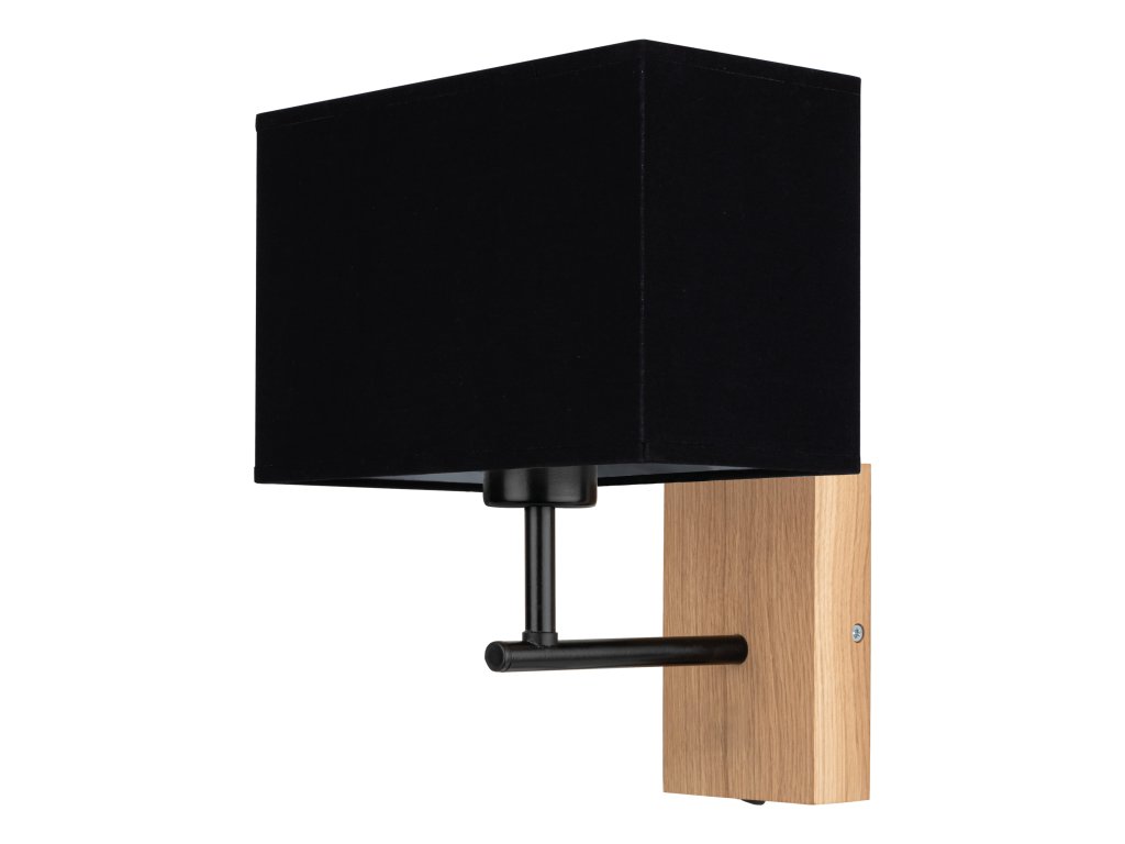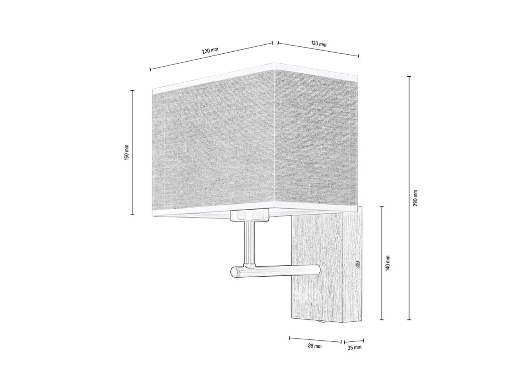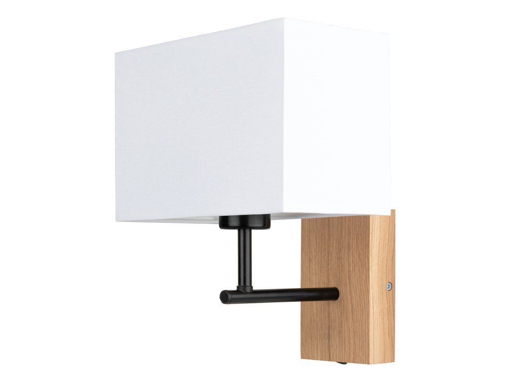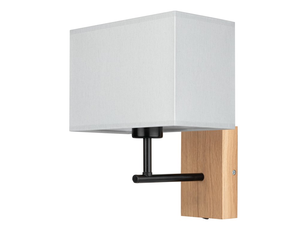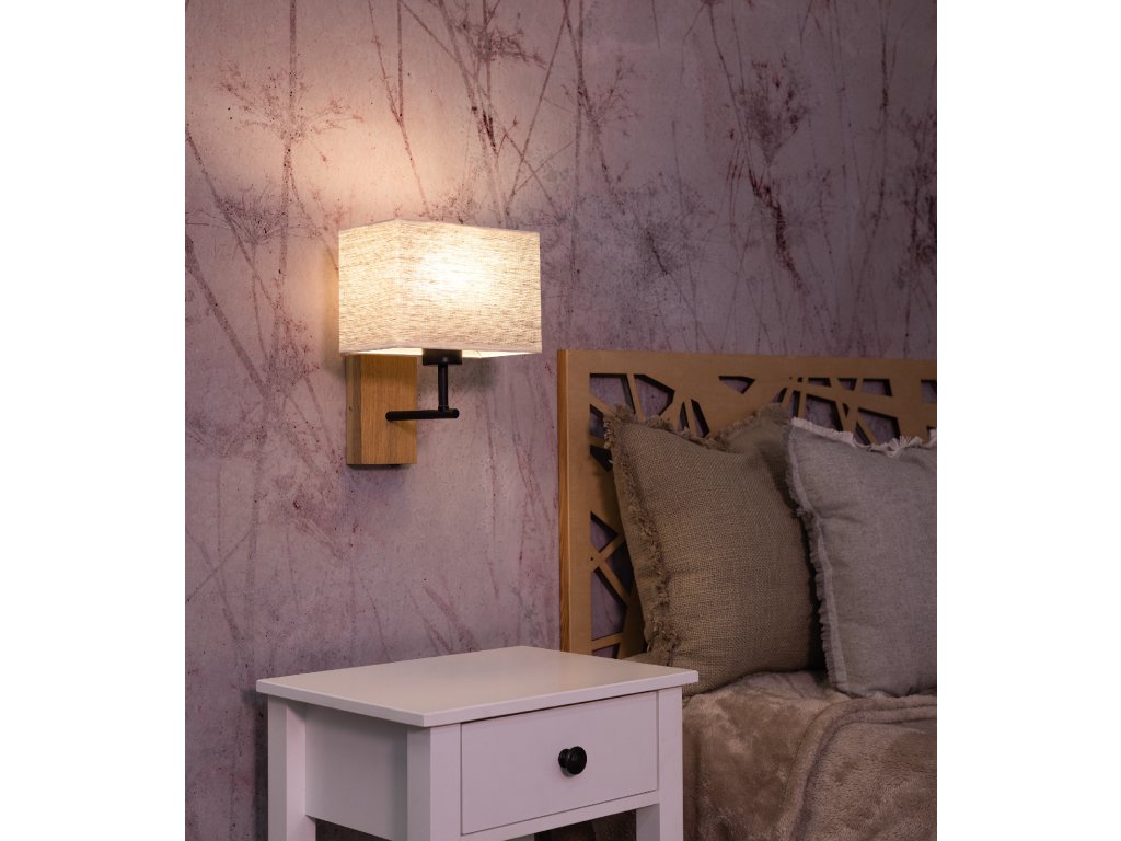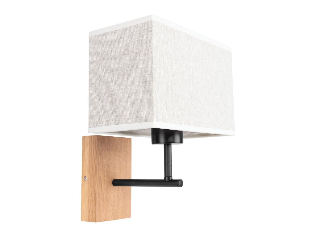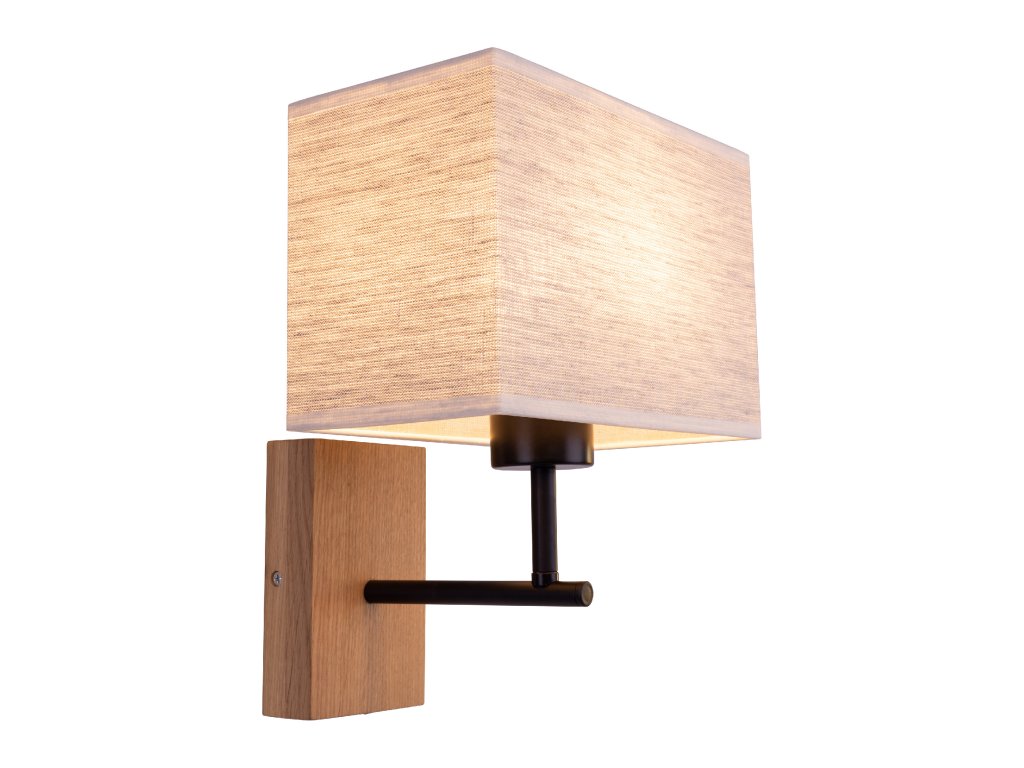 Hranaté stínidlo vyrobené z vysoce kvalitní lněné látky dokonale ladí s kombinací kovového a dubového těla všestranné lampy.