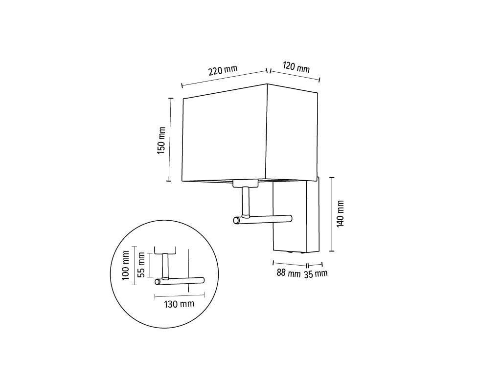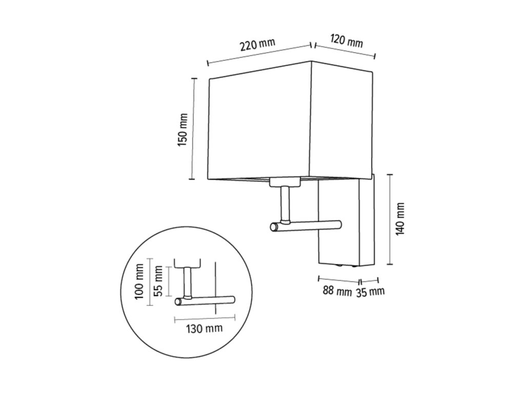 - k dispozici ve třech provedeních - válcovité stínidlo, hranaté stínidlo, válcovité s flexibilním čtecím ramenem nebo hranaté stínidlo s flexibilním čtecím ramenem