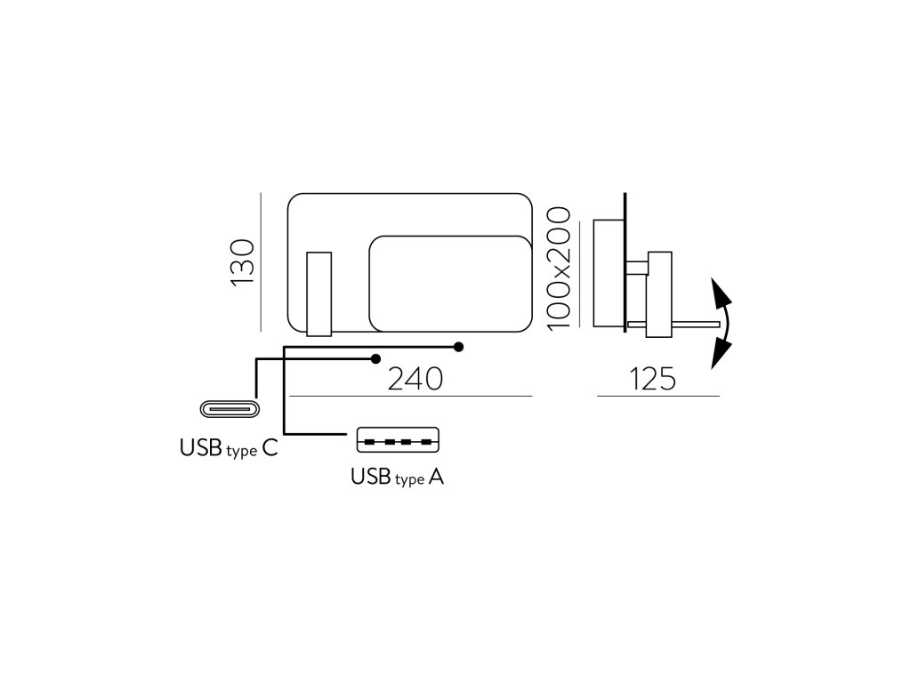 Nástěnné LED svítidlo LAIKA levé, š. 24 cm, 4W + 3W, CRI90, 2x vstup USB/USBC