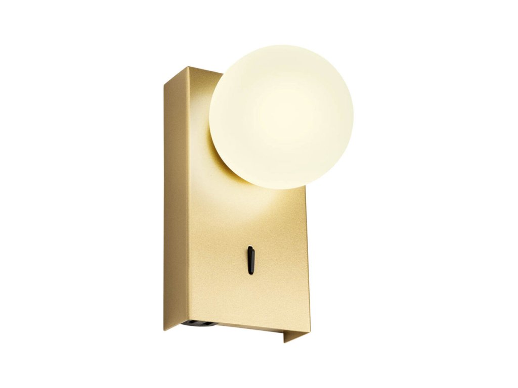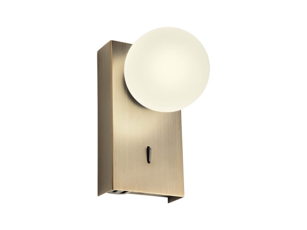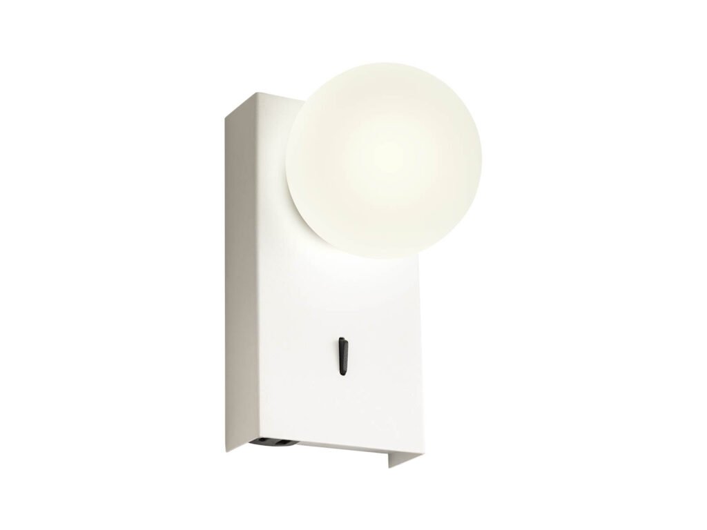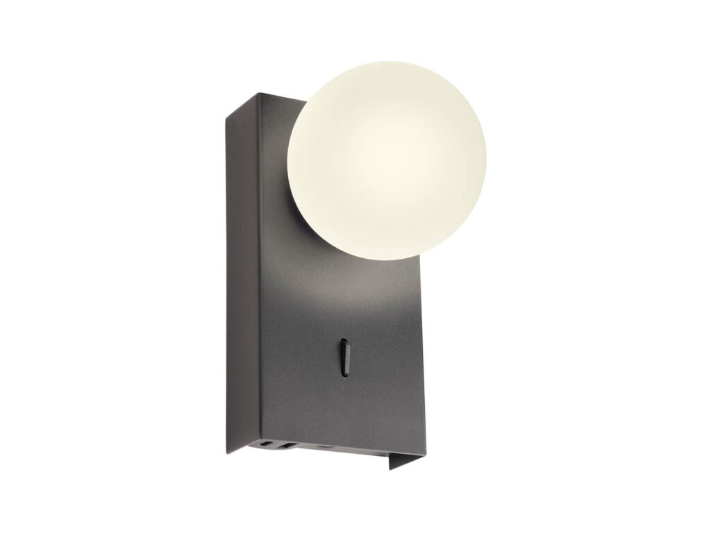 Nástěnné vnitřní svítidlo, vybavené SMD LED diodami, kovová a hliníková konstrukce, lakované v matné černé barvě, skleněný saténový opálově bílý difuzor, vybavené USB nabíjecím portem a vypínačem.