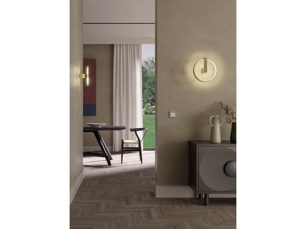 Nástěnné interiérové svítidlo vybavené SMD LED diodami s možností stmívání DALI stmívačem a ovládání teploty barev od teplé bílé po neutrální bílou. Konstrukce hliníku a kovu lakovaná pískovou černou, bílou, niklovou nebo hnědou barvou, difuzor v bílém opálovém silikonu.