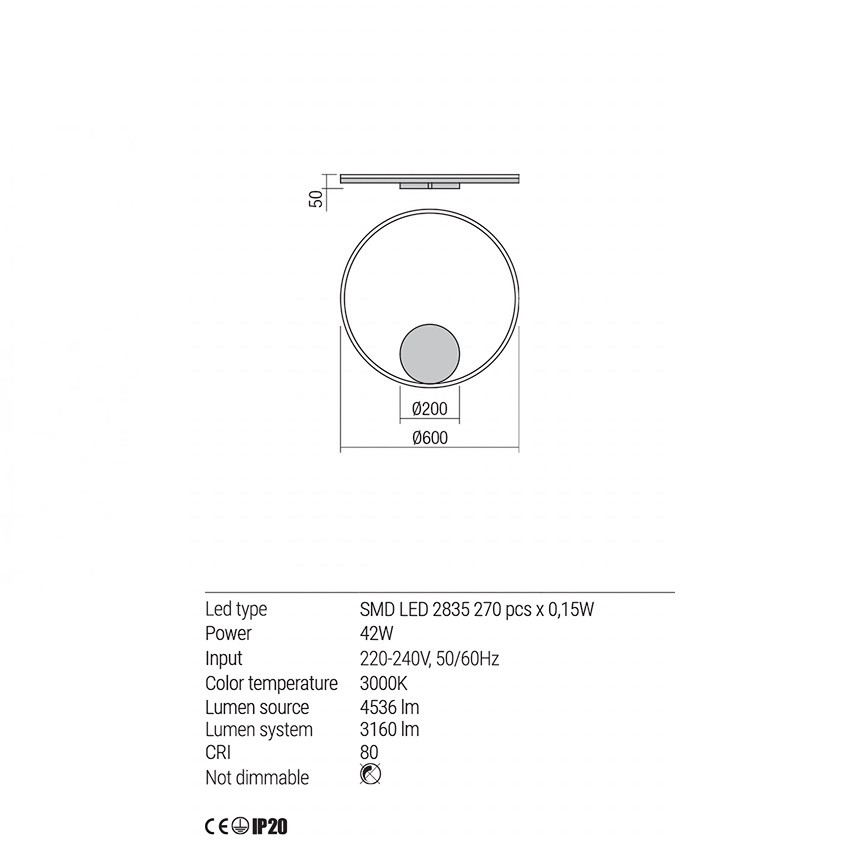Nástěnné/stropní LED svítidloORBIT ø 80 cm, 3000K | Nástěnné/stropní LED svítidloORBIT ø 80 cm, 3000K, v. 4,2 cm |