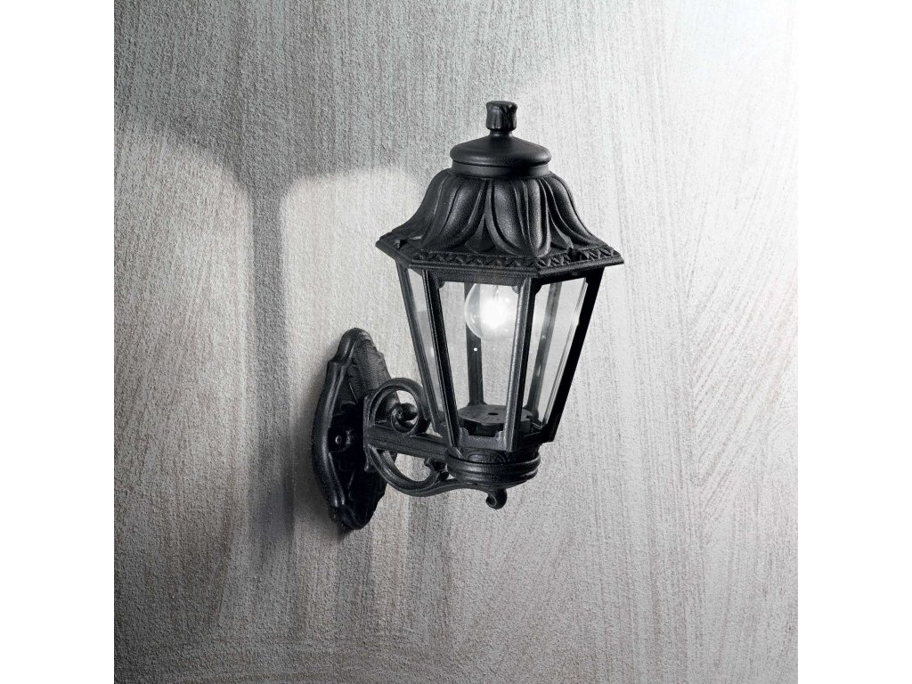 Nástěnné svítidlo Anna AP1 z kolekce venkovního osvětlení značky Ideal Lux ve větším provedení o celkové výšce 45 cm má velmi nápaditý vzhled v klasickém stylu. Vhodně osvítí Vaši terasu, balkon či stodolu, kam se svým designem bezkonkurenčně hodí. Svítidlo je vyrobeno z pryskyřice odolné vůči korozi a ztrátě barvy vlivem UV záření a teplotním výkyvům od -60°C do +90°C. Základna i rameno, které je umístěno v dolní části světla, jsou zhotoveny v matně černé povrchové úpravě. Difuzor je na vrchní části zdobený okrasnými listy a po stranách doplněný o čiré metakrylátové tabule odolné vůči zežloutnutí. Skrývá patici E27 o maximálním příkonu 1 x 60W. Zdroj není součástí balení, doporučujeme zvolit LED filamentovou žárovku pro lepší světelný efekt. Krytí IP44 chrání před stříkající vodou a je vhodné pro montáž do vlhkých míst.Doplňkové parametry