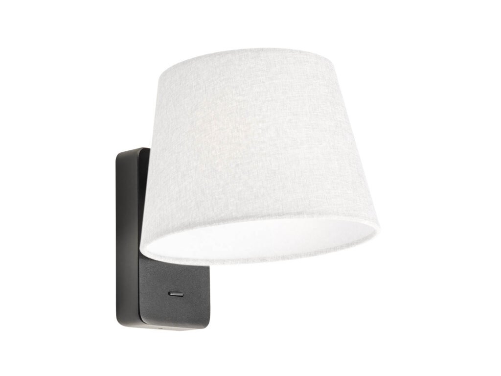 Nástěnné vnitřní svítidlo, vyrobené z kovu lakovaného matnou černou barvou, vybavené vypínačem. Stínidlo je nutné zakoupit samostatně.