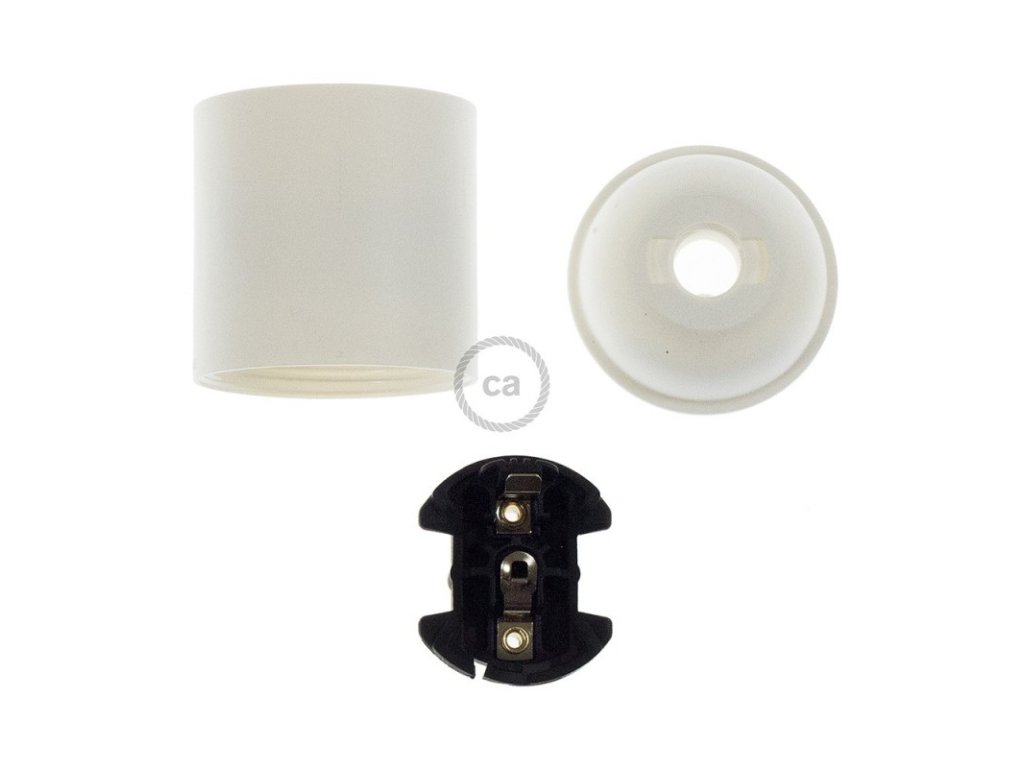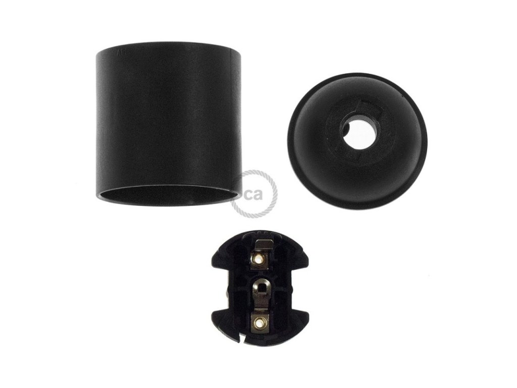 Objímka z termoplastu E27 je užitečná pro sestavení nástěnné, stolní nebo stropní lampy. Termoplast je lehčí než bakelit a má matný povrch.
