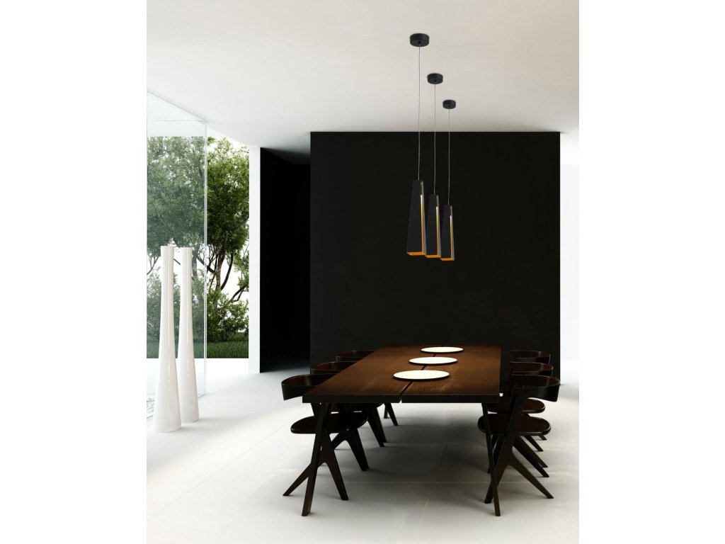 PLUMA závěsné svítidlo, černá a zlatá - FARO
