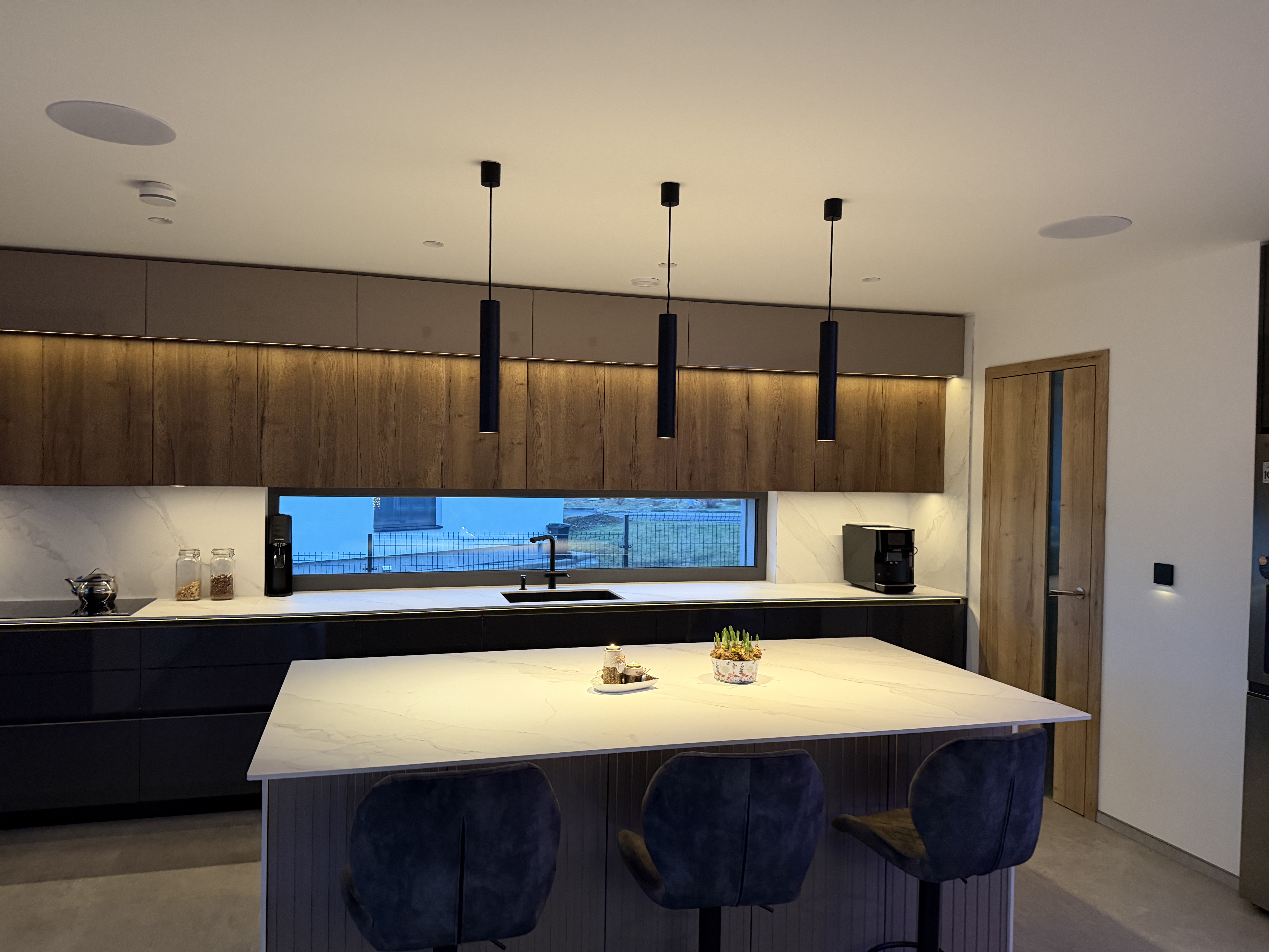 Realizace mezonetu v Praze ve spolupráci s paní Staňkovou ze zivyinterier zahrnovala instalaci osvětlení napojeného na chytrou domácnost. Použita byla svítidla LENS od značky Bomma, kolejnicové systémy a ručně vyráběná svítidla Slamp, která harmonicky zapadají do moderního a funkčního prostoru.