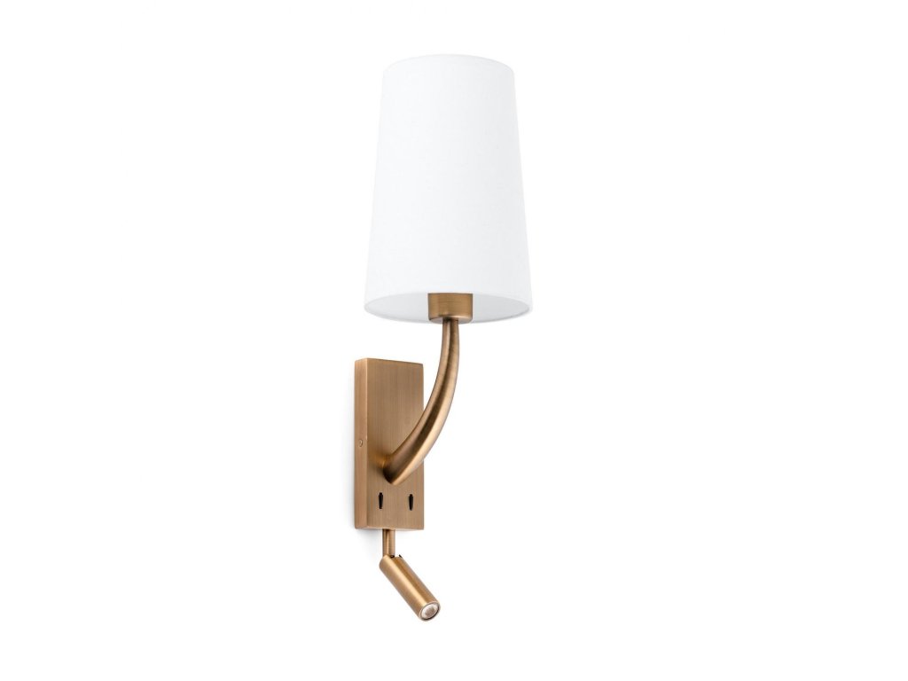 REM nástěnná lampa, starozlatá/bílá, se čtecí lampičkou - FARO