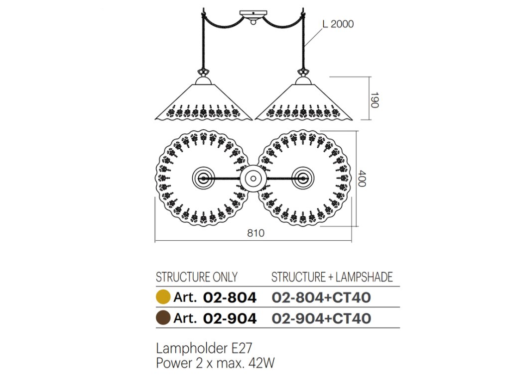 - Do svítidla jsou určené 2 žárovky s paticí E27