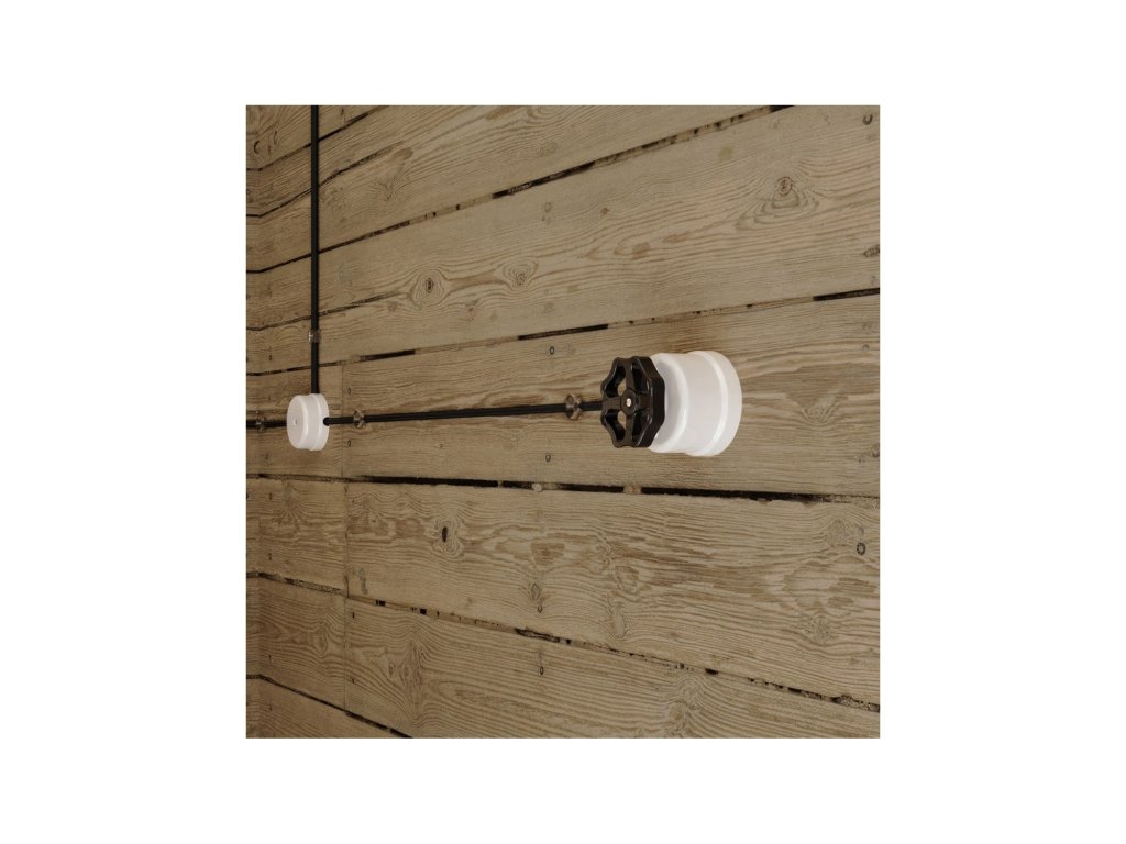 Bílý porcelánový elektrický spínač je podepsán Creative-Cables a připomíná klasický tvar vodovodního ventilu, což přidává výrobku vintage šarm a nadčasovou přitažlivost. Kromě funkčnosti tvoří tento prvek také dekorativní prvek, který zvyšuje dekor a přidává výraznou barvu: také si budete moci vybrat z široké škály barev, aby se buď doplnila místnost nebo vytvořil zábavný kontrast.