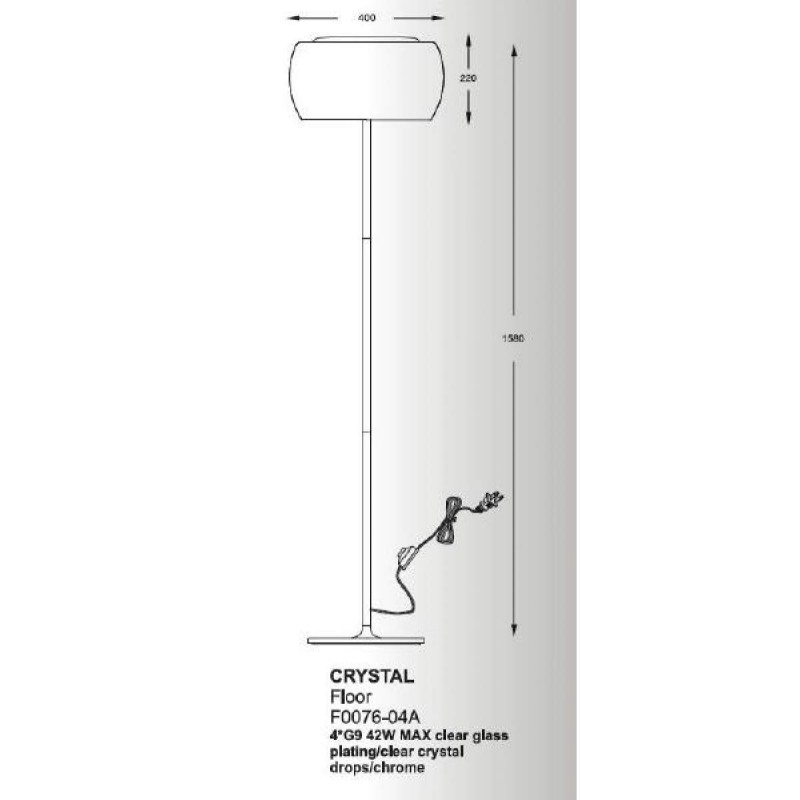 - luxusní stojací LED lampa s chromovým zrcadlovým skleněným stínidlem a elegantními křišťálovými závěsy