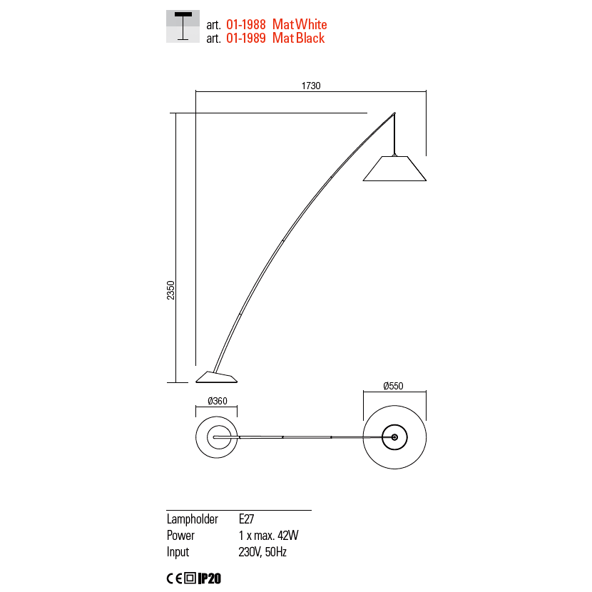 Podstavec je z uhlíkového vlákna. Stínidlo je z látky a je podlepeno PVC výztuží. Lampa je ve dvou variantách - bílá a černá.