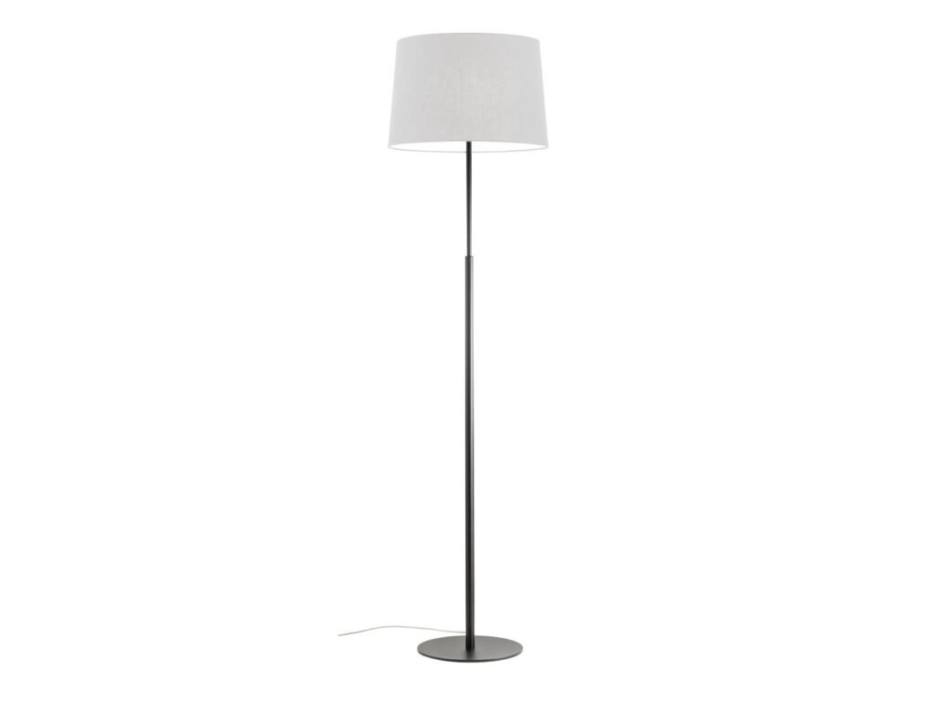Stojací interiérová lampa, konstrukce z kovu lakovaného matnou černou barvou. Stínidlo je nutné zakoupit samostatně.