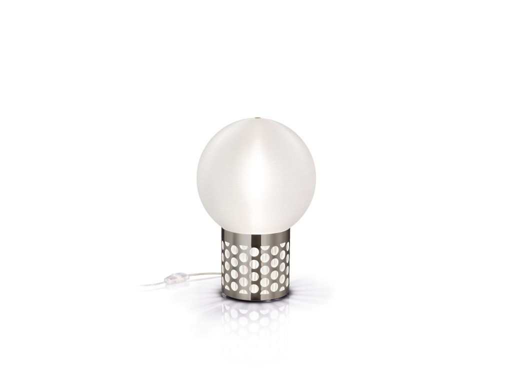Atmosfera je ikonická a dekorativní stolní lampa inspirovaná retro stylem 50. let 20. století, u níž se ve verzi stolní lampy překrýváním dvou vrstev materiálu v podstavci vytváří charakteristický optický efekt "puntíku". Podstavec verze "Fringe" zase zdobí sukně z třásní ve stylu kerlestonu. Tento abatjour je vybaven dvojitým nezávislým zapalováním základny a difuzoru, aby se v nejtemnějších hodinách proměnil z nábytkového předmětu na zdvořilostní světlo. Jeho koule je ručně broušena přímo v kreativním ateliéru Slampu našimi krejčími světla.