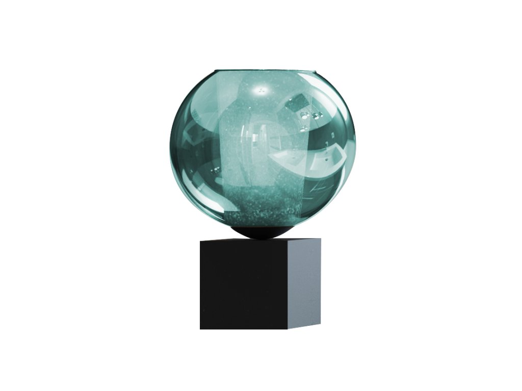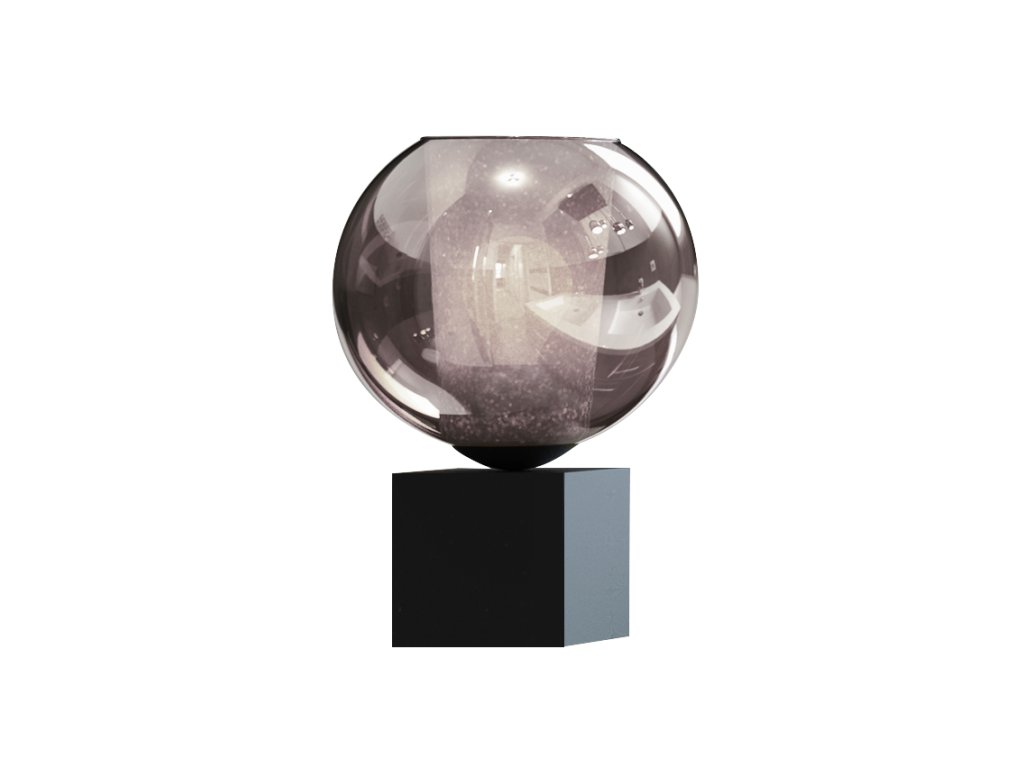 Kolekce Emy zahrnuje stolní lampu s difuzorem z borosilikátového skla, ručně vyrobeného italskými mistry skláři, vyznačující se výrazným vnitřním kuželem s matnou povrchovou úpravou, který slouží také jako kryt žárovky.