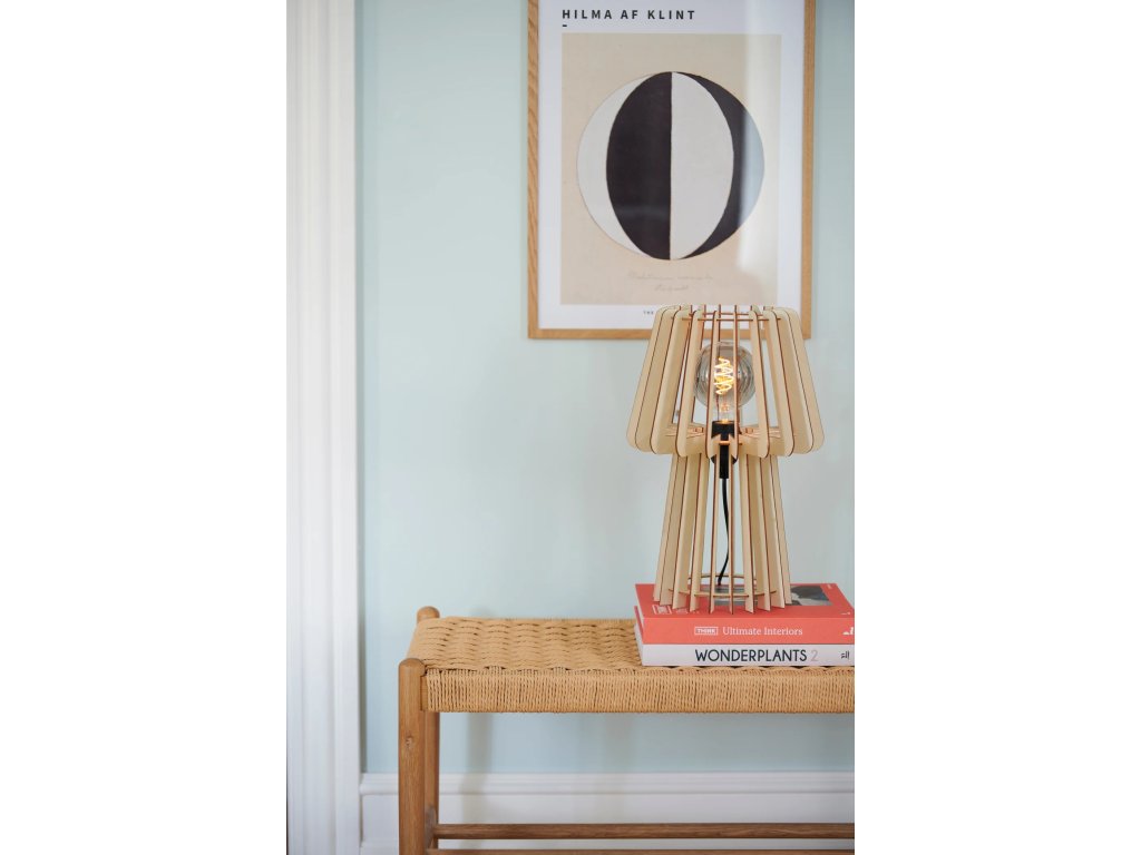 Groa je otevřená stolní lampa, kde dřevěná konstrukce zve přírodu dovnitř a vytváří krásnou souhru světla a stínu.