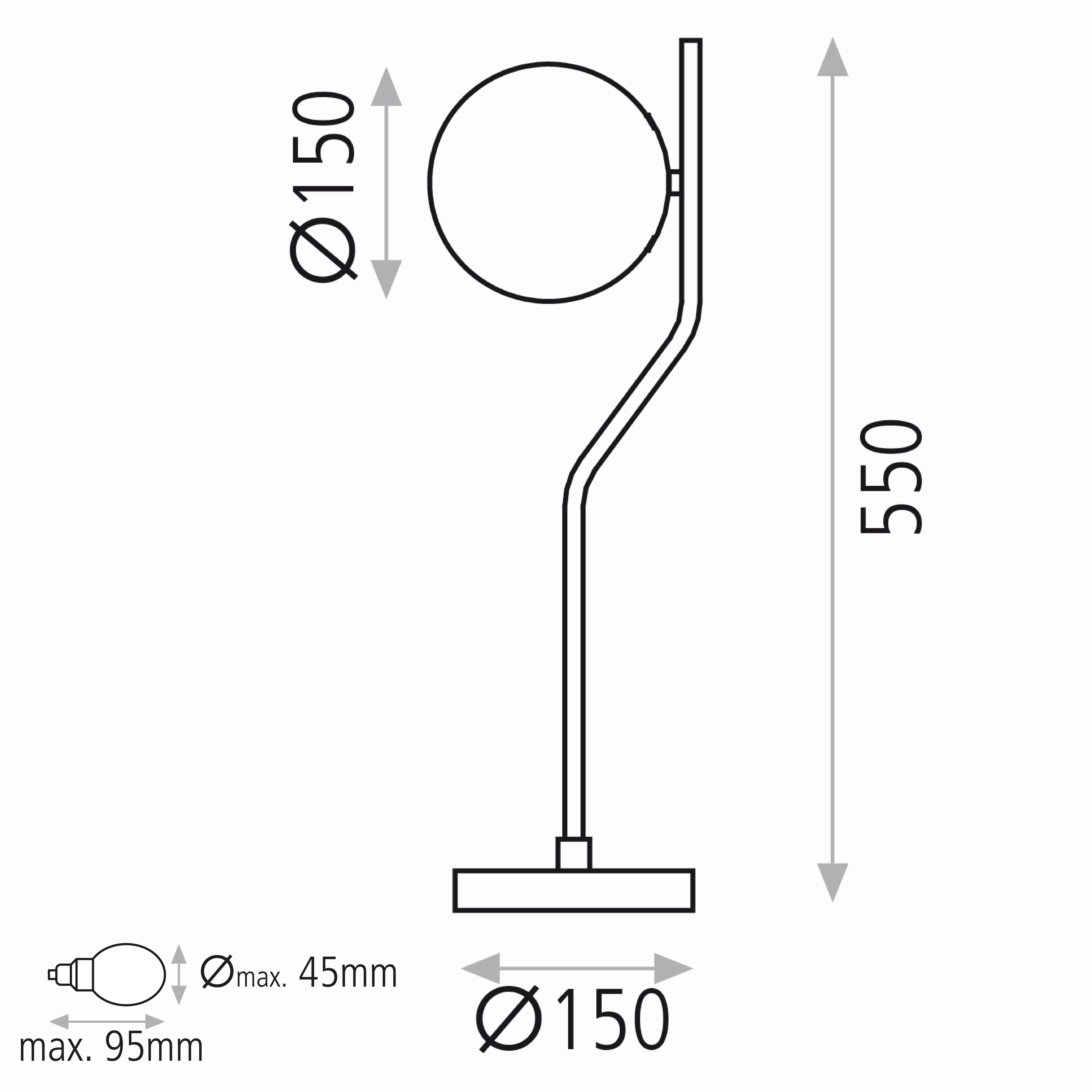 Atraktivní stolní lampa s moderním designem ze série Maui, vyrobená z kulaté kovové základny s dlouhým zakřiveným kovovým ramenem a kulovým stínidlem z opálového skla. Stylové svítidlo, které naplní jedinečnou atmosférou a zútulní váš obývací pokoj, jídelnu, ložnici, kancelář, hotel i restauraci .
