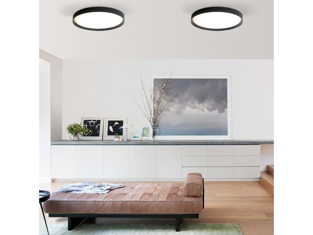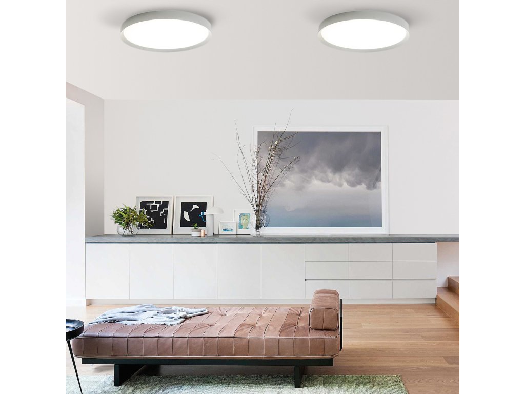 Moderní, atraktivní a zároveň velmi elegantní stropní LED svítidlo v kulatém tvaru s mírně zapuštěným difuzorem vzhledem k rámu.
