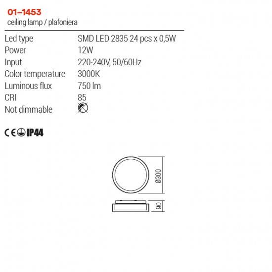 - osvětlení je ideální pro použití v koupelnách, prádelnách a vlhkých místnostech, s krytím IP44