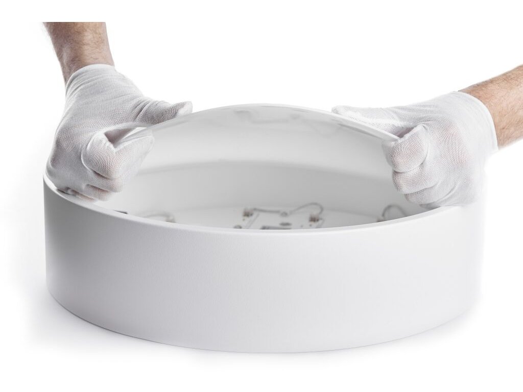 - obvodový kovový plášť je v černé, bílé, zlaté, smetanové nebo stříbrné barvě, světlo z LED čipů rovnoměrně a příjemně prosvítá skrze mléčný plastový kryt