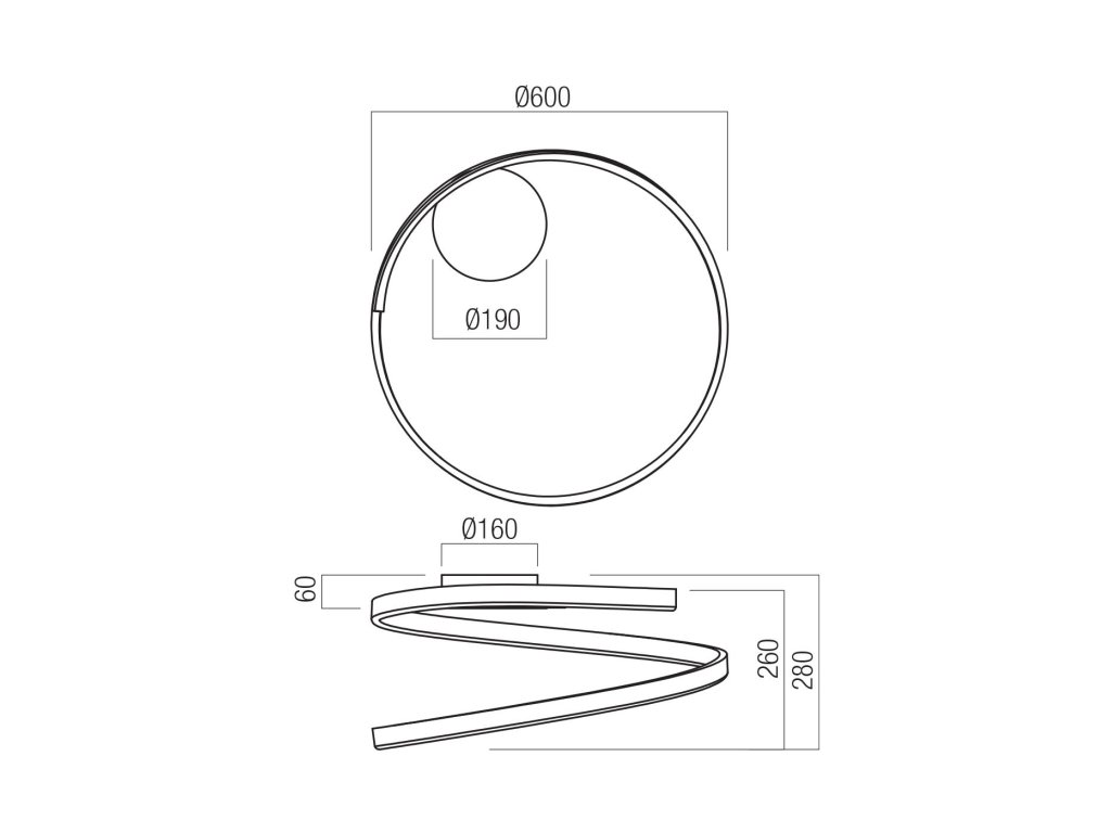 Stropní LED svítidlo SCROLL ø 600mm, 38W