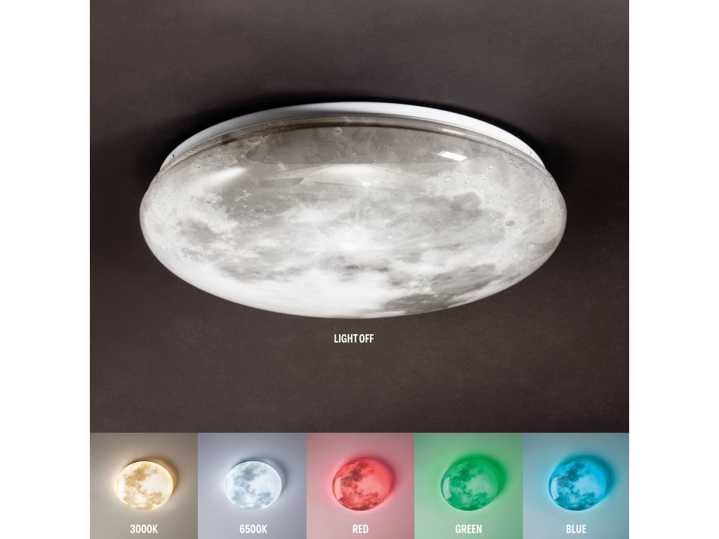 Vnitřní stropní/nástěnné svítidlo vybavené SMD LED diodami v teplé bílé, studené bílé a RGB SMD LED, řízené systémem TUYA. Kovová konstrukce lakovaná matnou bílou barvou, potištěný metakrylátový difuzor. Dodává se s dálkovým ovládáním (2 baterie AAA jsou součástí balení) s více funkcemi: ON/OFF, 5 provozních programů, ovládání intenzity světla, změna teploty barev z teplé bílé na studenou bílou nebo RGB, režim nočního osvětlení.