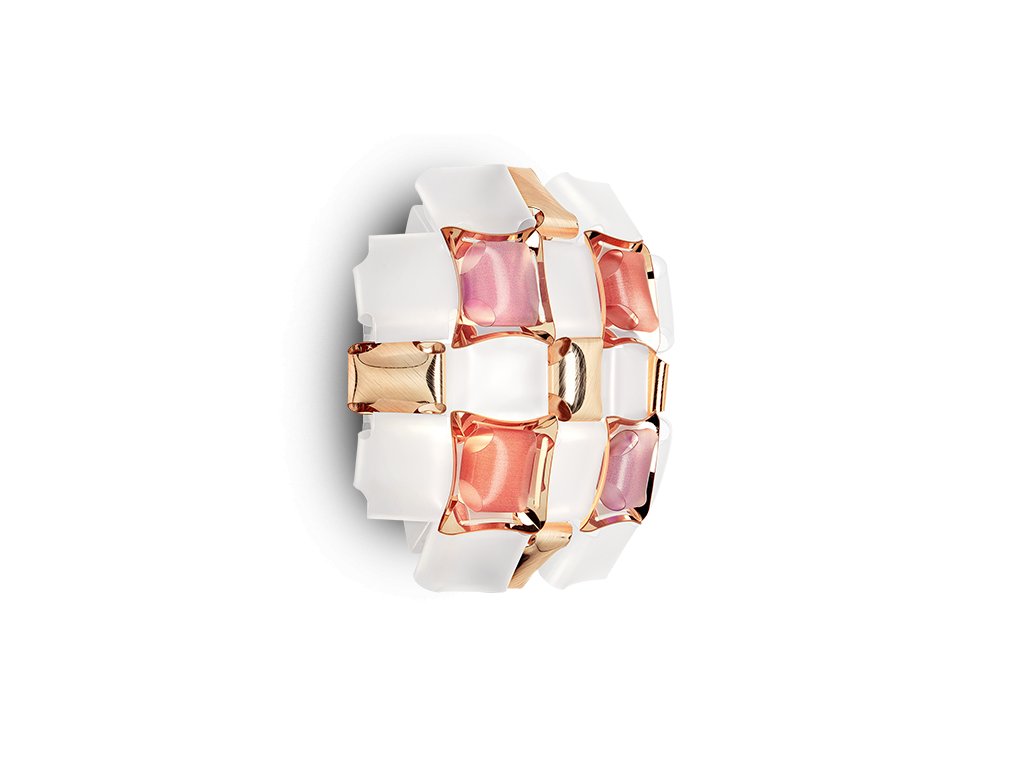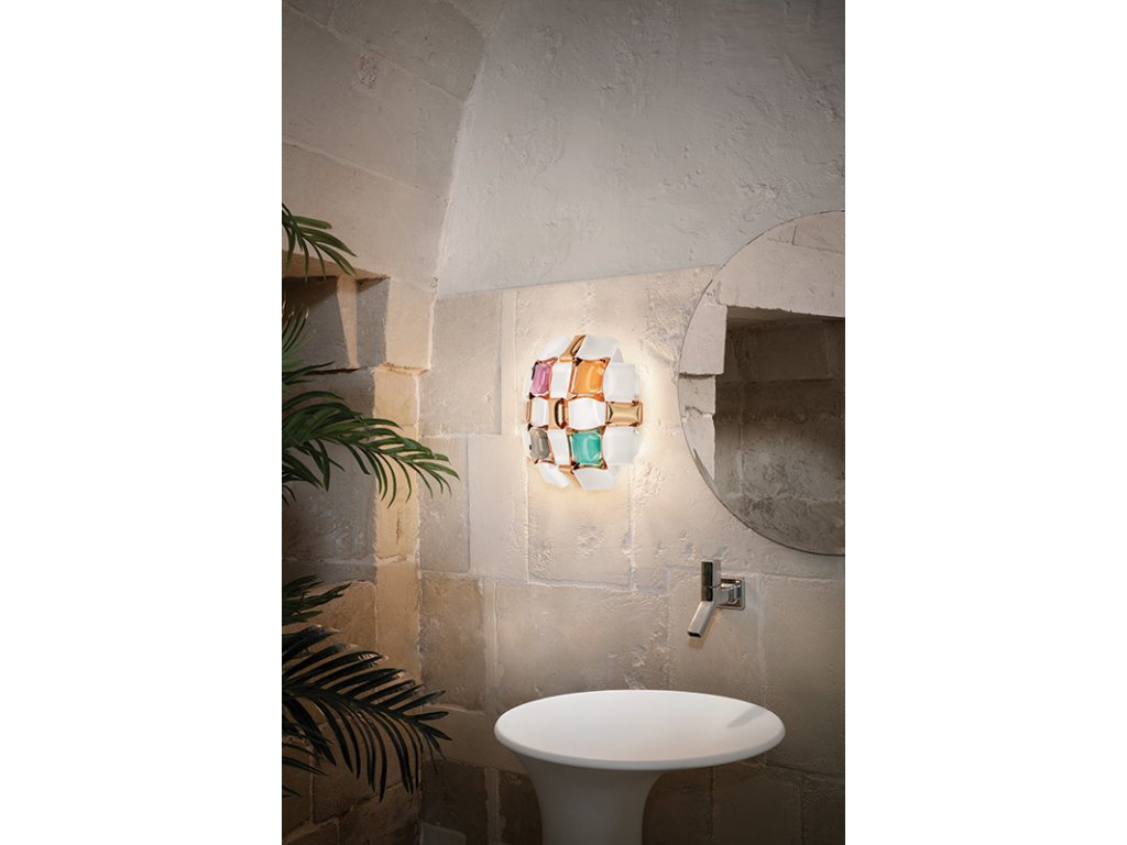 Mida se inspiruje světem šperků haute couture. Pavéza z drahých kamenů pokrývá téměř neviditelnou soupravu a leštěné kabošony jsou geometricky rozptýleny v květinové koruně s hedvábnými, duhovými tóny. Designérka použila barevné a kovové drahokamy, aby oživila kolekci 3 velikostí a 5 barevných kombinací; každá z nich je ručně vyrobená a má integrovaný magnetický systém, který usnadňuje instalaci a údržbu.