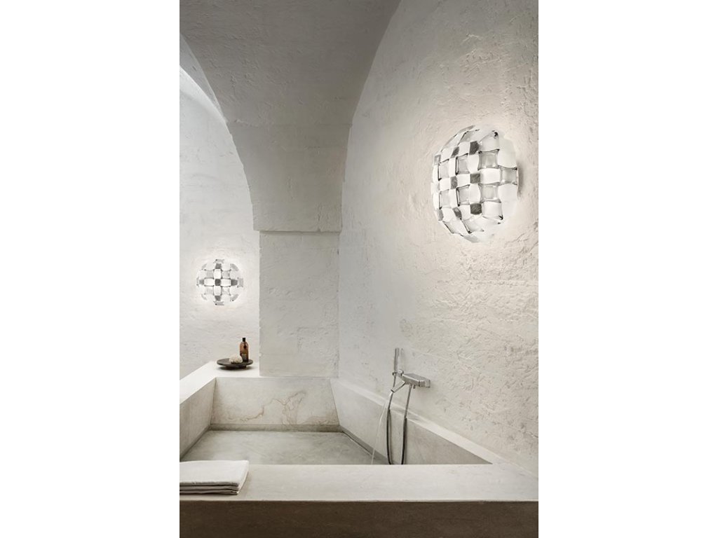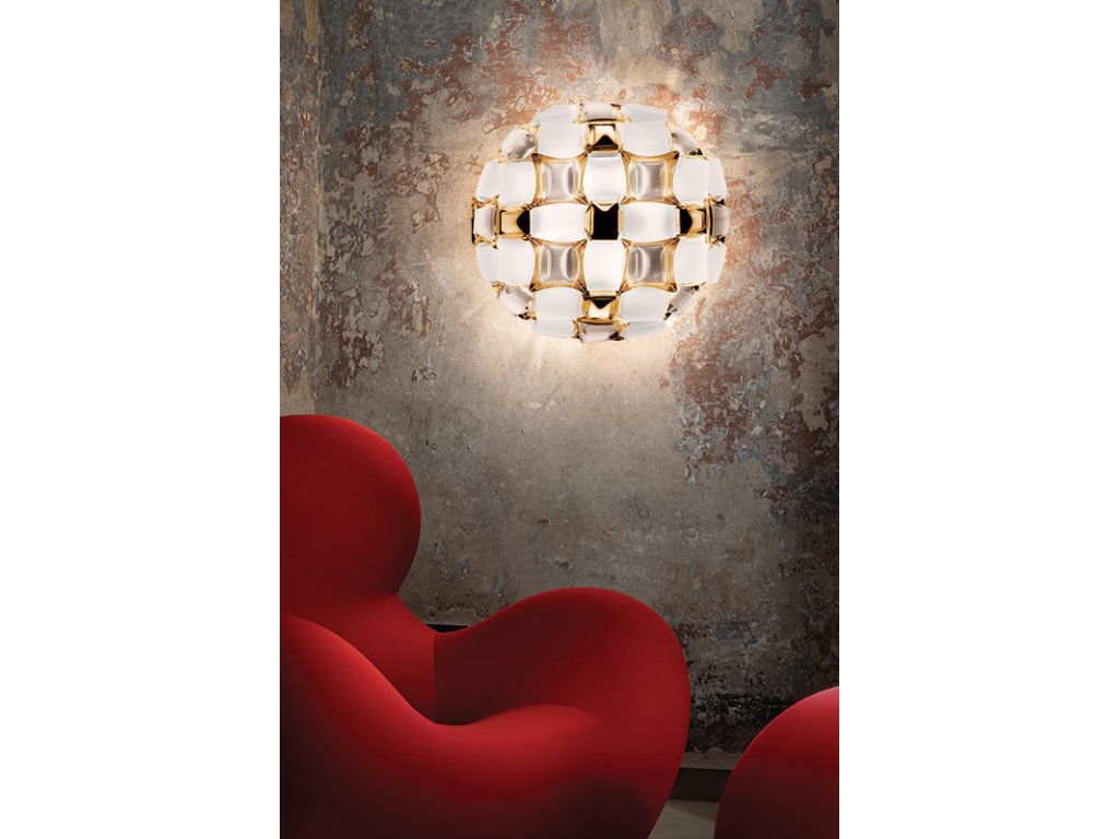 Mida je stropní/nástěnné svítidlo s naším exkluzivním magnetickým systémem inspirovaným světem šperků haute couture. Pavéza drahých kamenů inkrustuje téměř neviditelné osazení a leštěné kabošony jsou geometricky rozesety po květinové koruně s hedvábnými, duhovými kameny. K dispozici v pěti barevných kombinacích, od křiklavé Multicolor po univerzálnější White/Platinum a White/Gold. Mida je kompletně ručně vyrobena z bílého Opalflexu® a potištěného Lentiflexu®, jehož hedvábný morfující efekt se střídá s kartáčovanými pokovenými "drahokamy". Mida učiní každou místnost mimořádně luxusní.