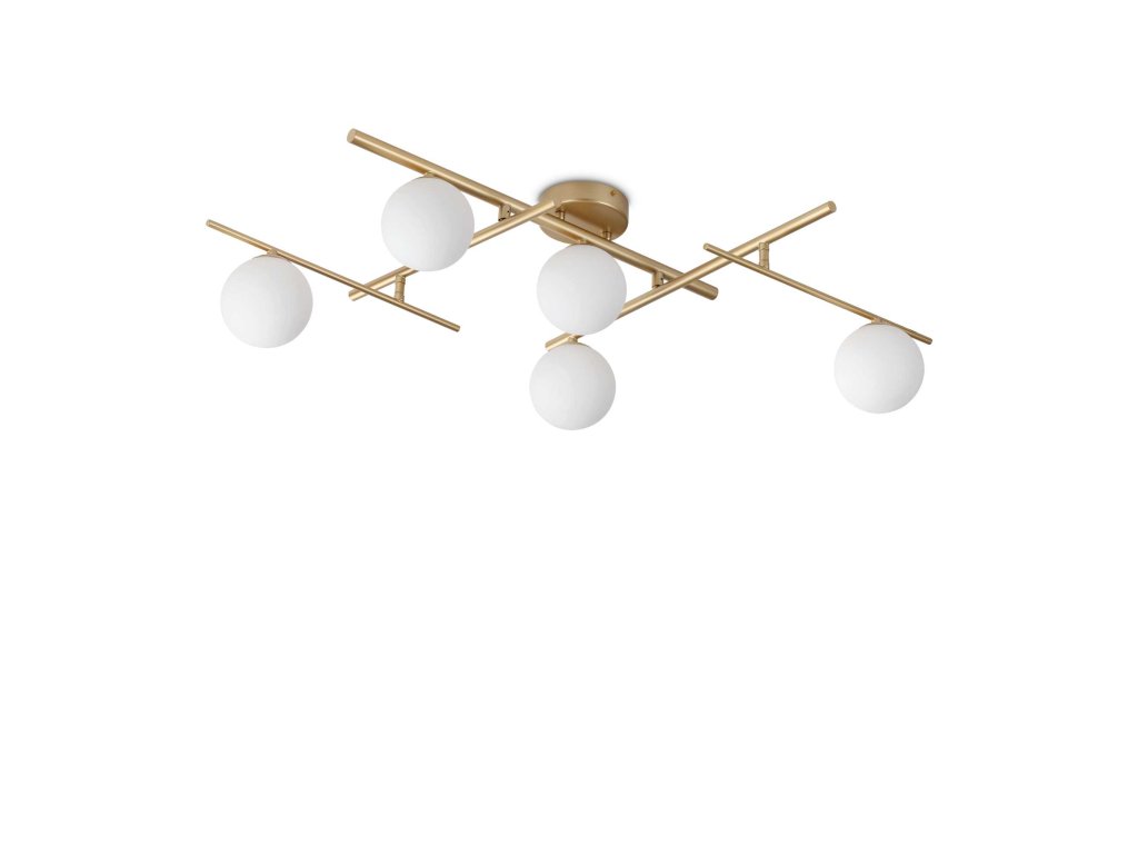 Stropní svítidlo ATLAS vyrobeno z kovu a matně lakované černou, bílou nebo zlatou barvou. Ramena svítidla jsou nastavitelná. Difuzory jsou z bílého opálového skla leptaného kyselinou. Svítidlo je ideální do obývacího pokoje či ložnice